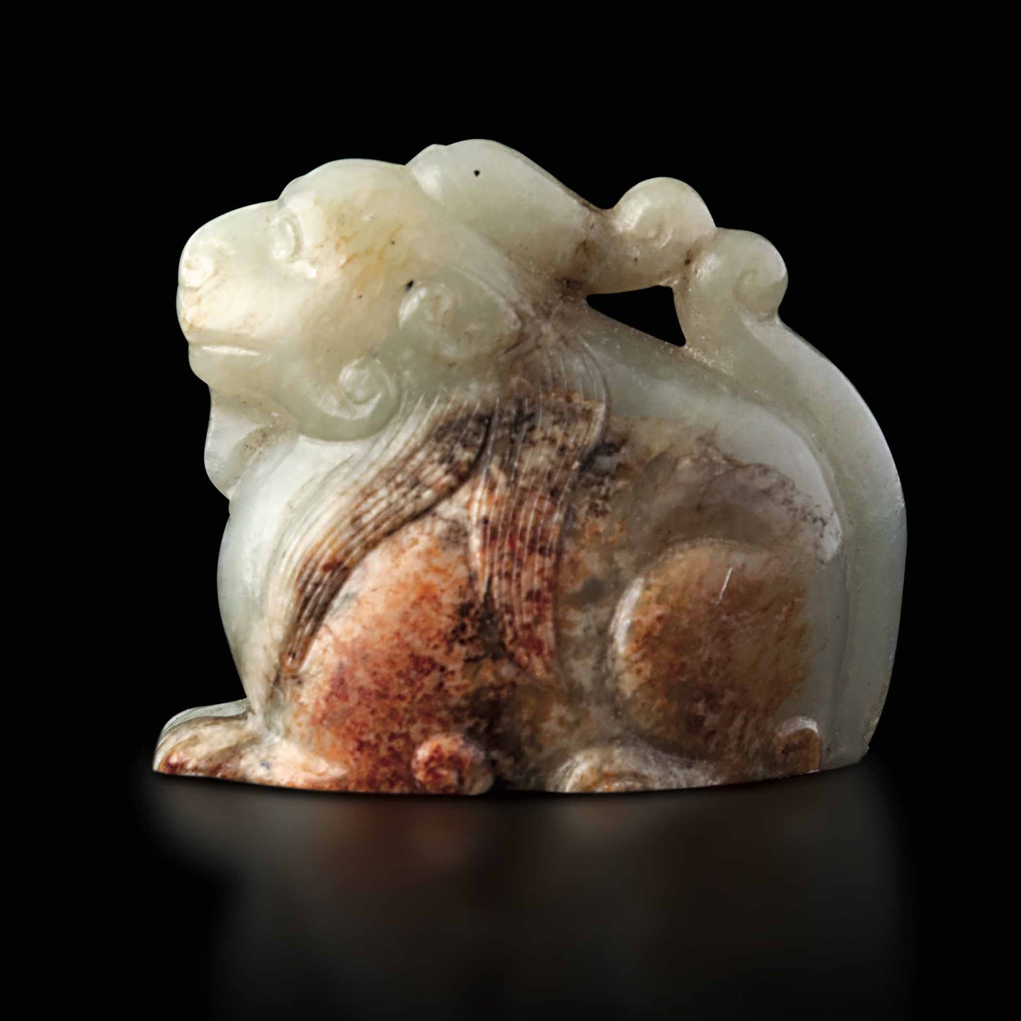 Figura di draghetto scolpita in giada e russet, Cina, Dinastia Qing, XIX secolo
