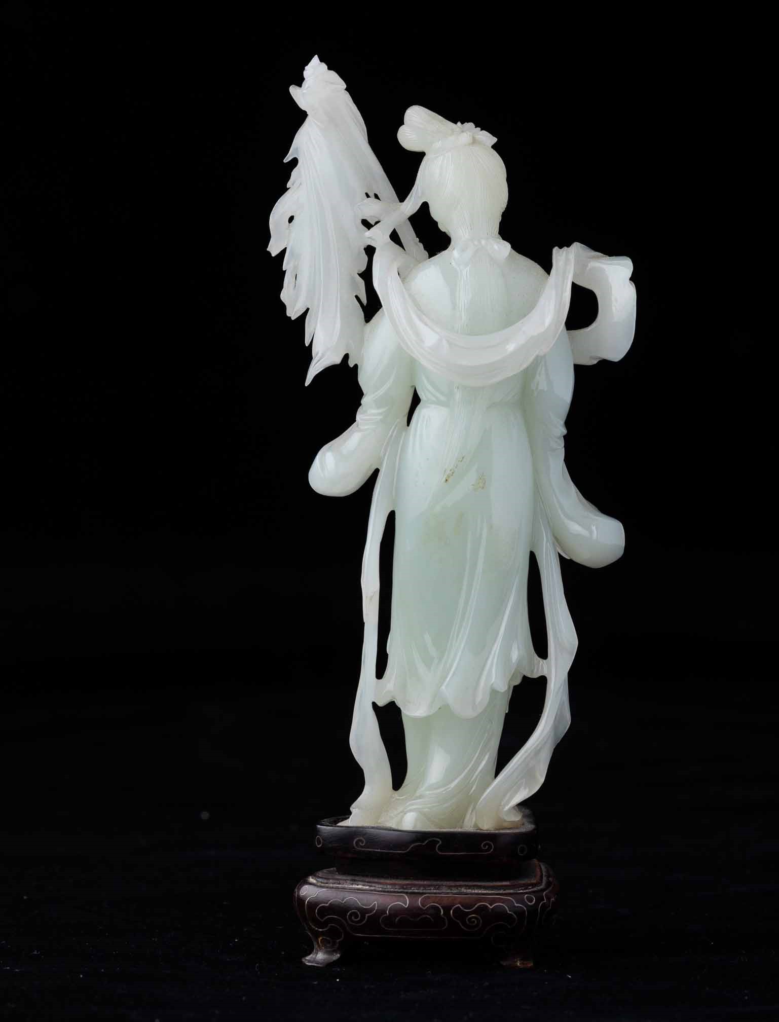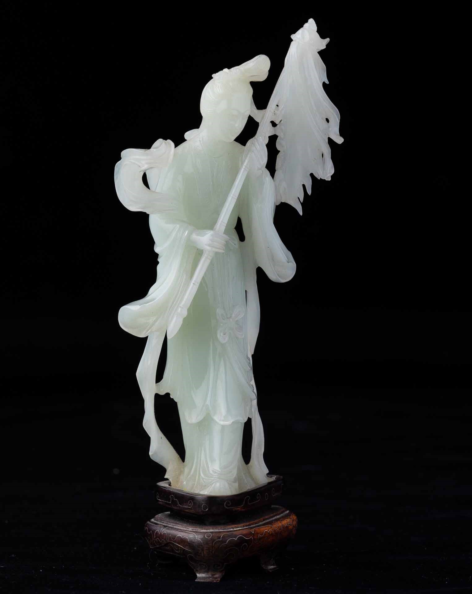 Figura di fanciulla con stendardo scolpita in giada bianca, Cina, Repubblica, XX [..]