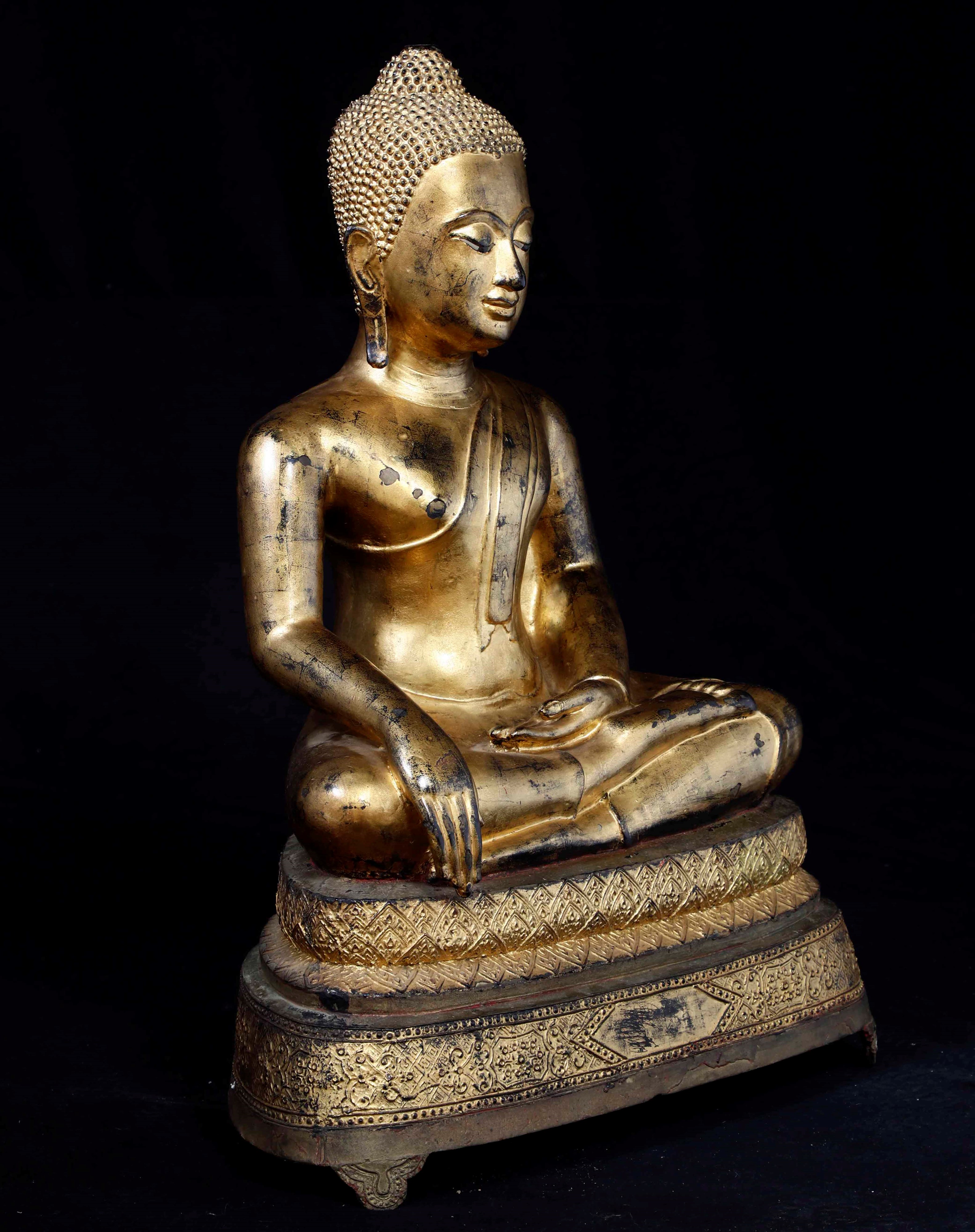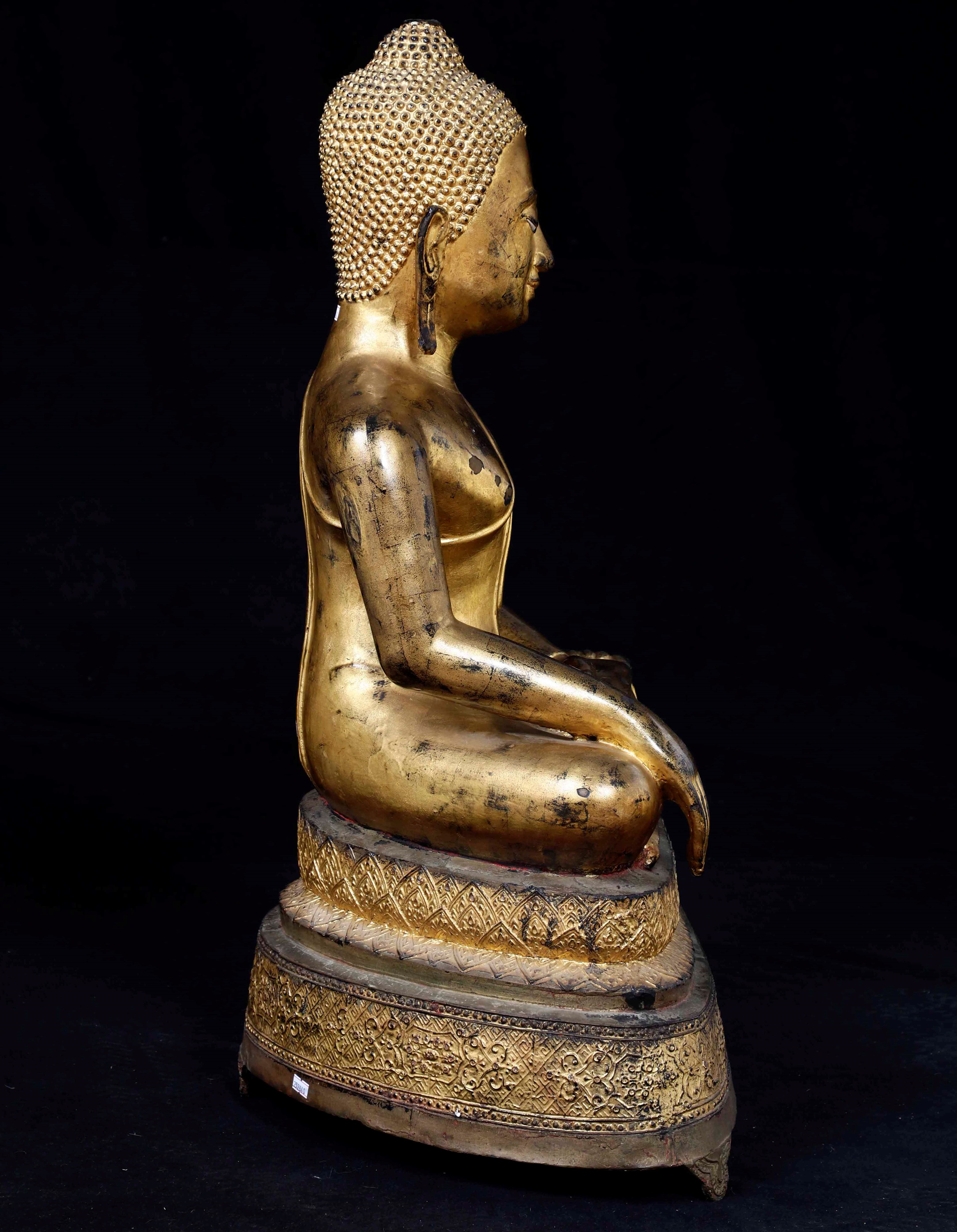 Grande figura di Buddha Sakyamuni in bronzo dorato, Thailandia, inizi XIX secolo
