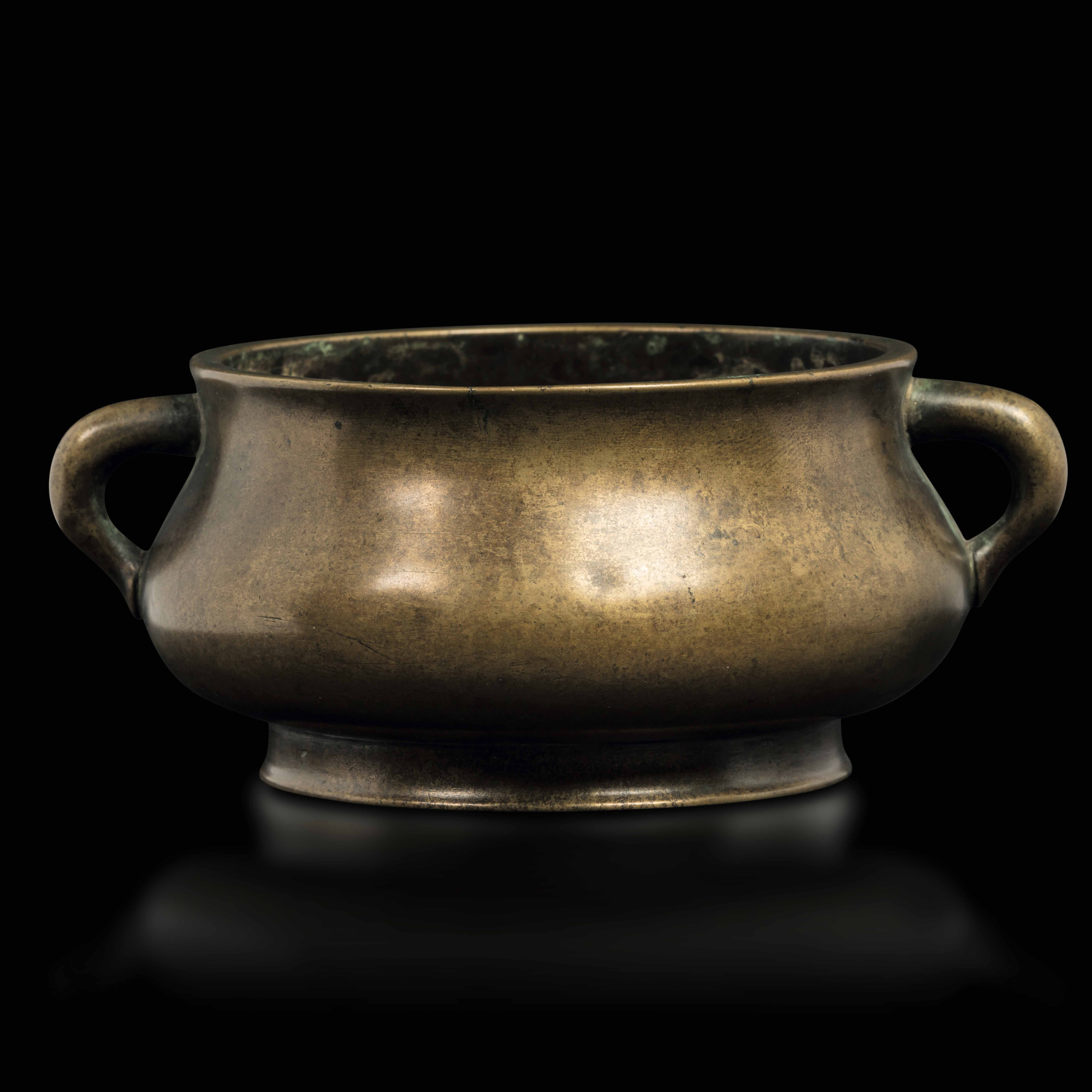 Incensiere in bronzo dorato con due manici, Cina, Dinastia Ming, XVII secolo