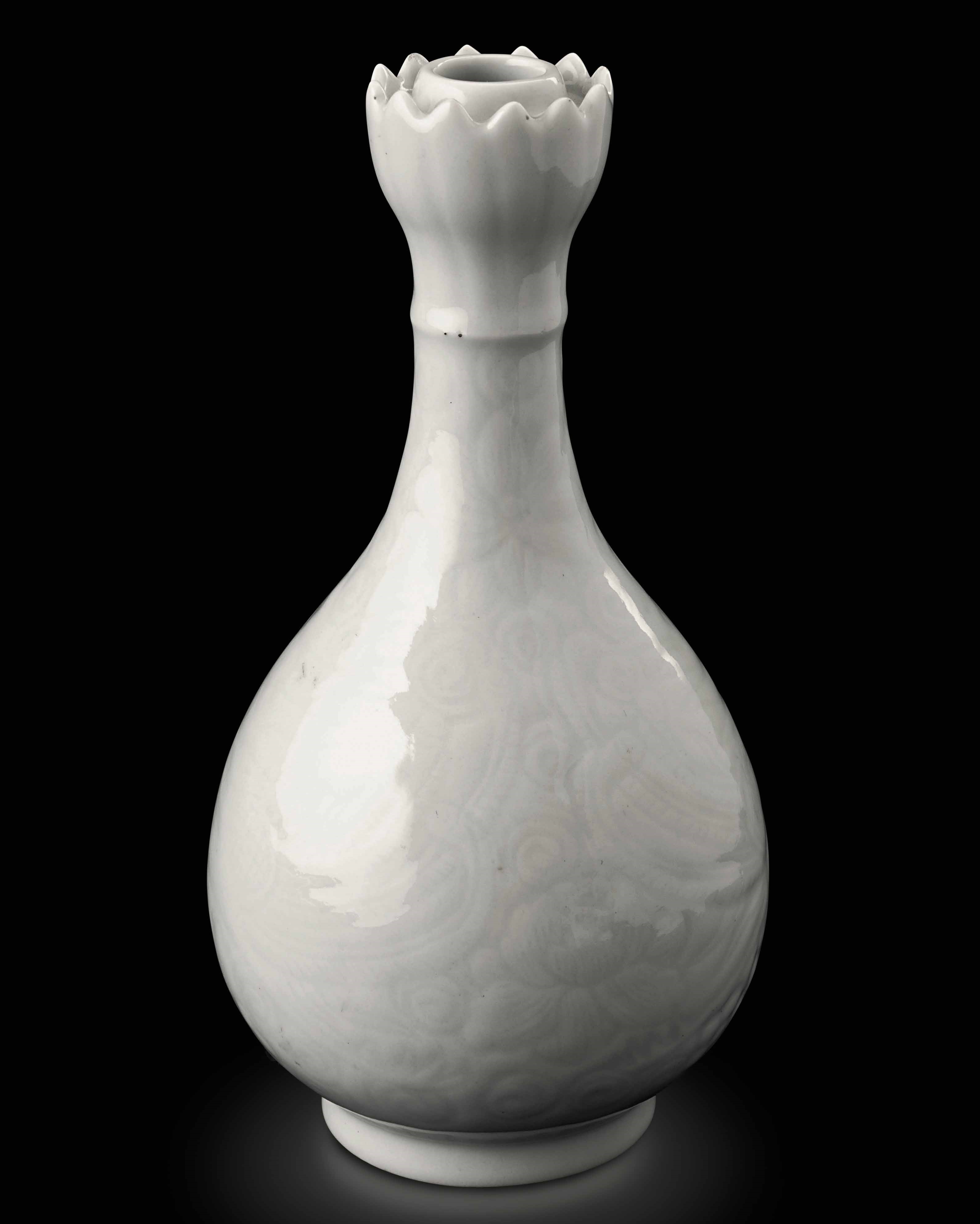 Lotto composto da un piccolo vaso in porcellana monocroma blu, uno a smalti policromi [..]
