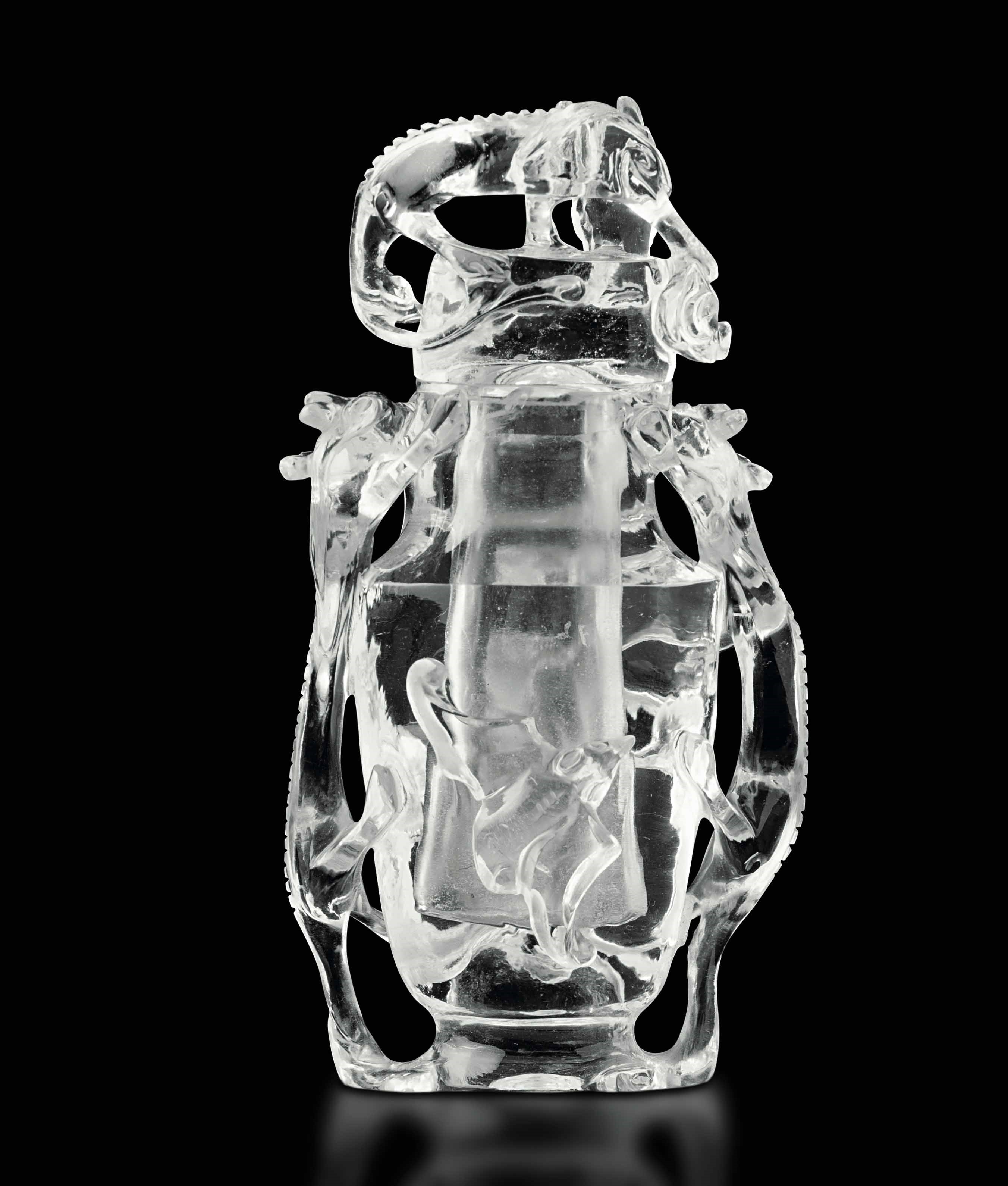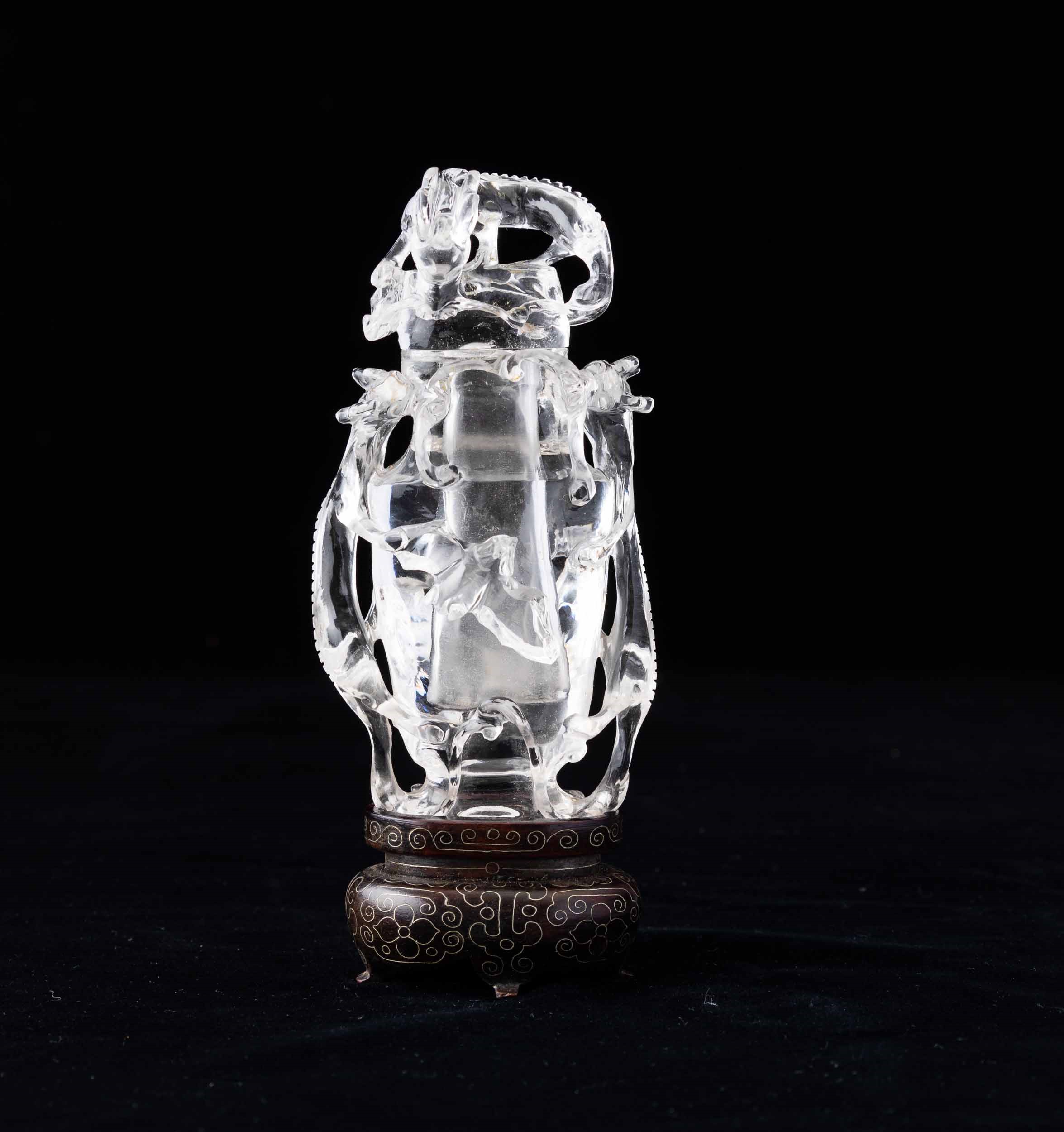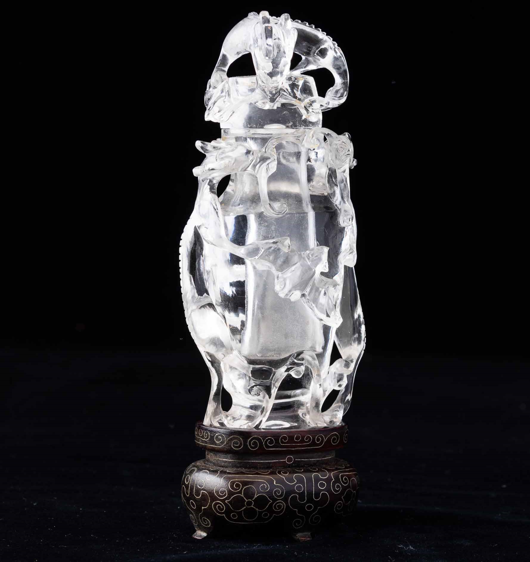 Piccolo vaso scolpito in cristallo di rocca con coperchio e decoro a rilievo e a [..]