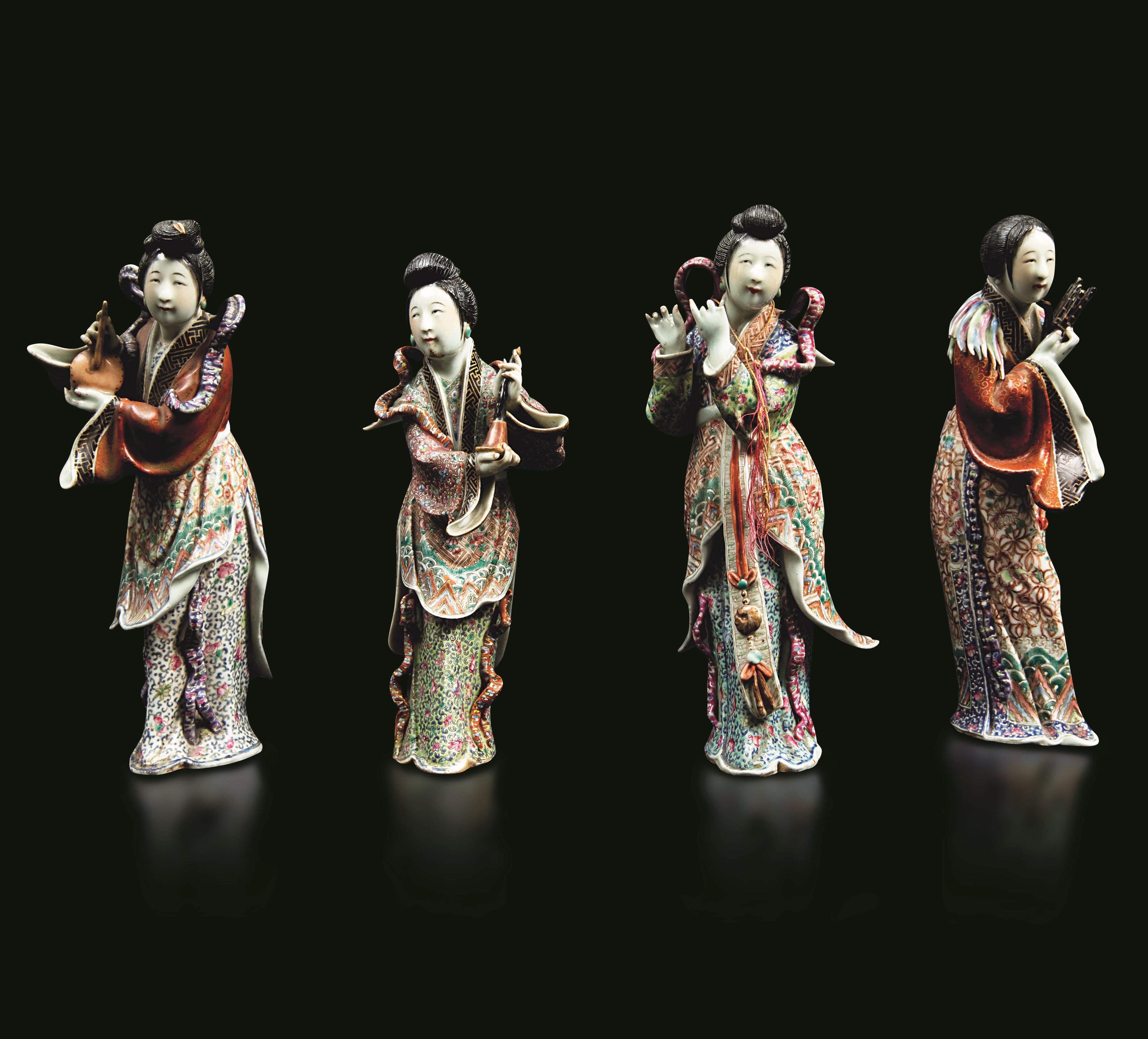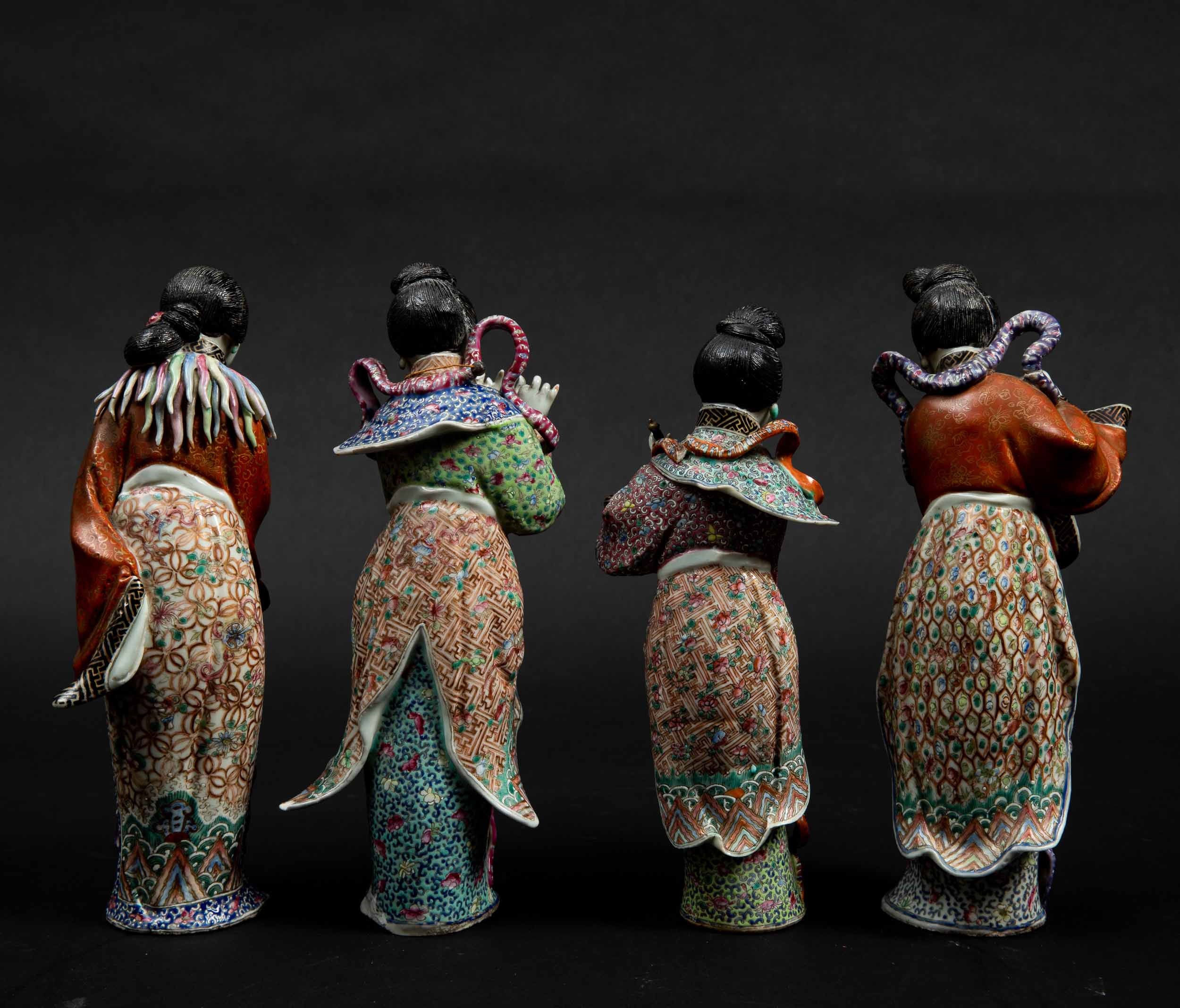 Quattro fanciulle con strumenti musicali in porcellana a smalti policromi, Cina, [..]