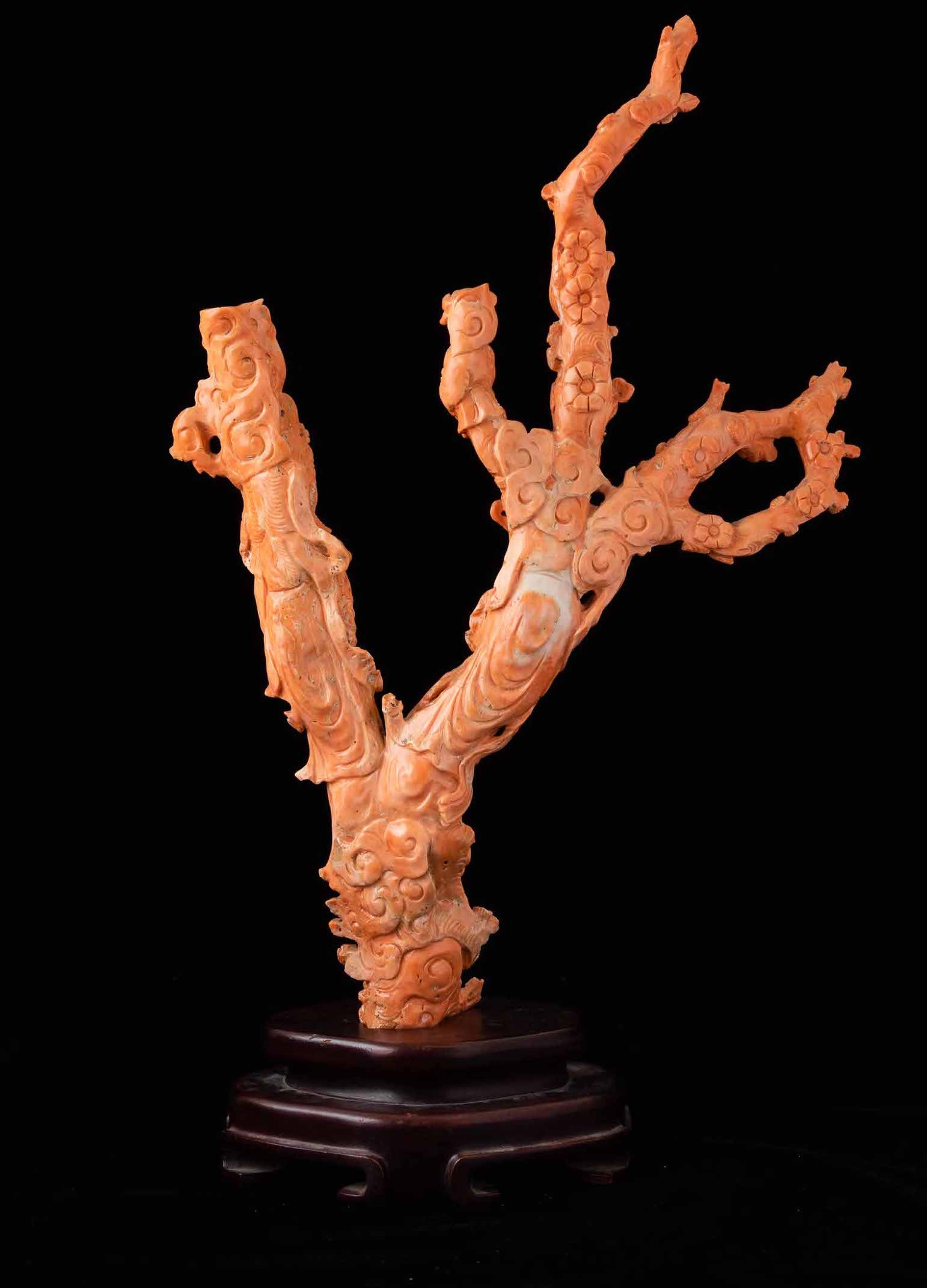 Ramo finemente scolpito in corallo raffigurante fanciulle con bambino, Cina, inizi [..]