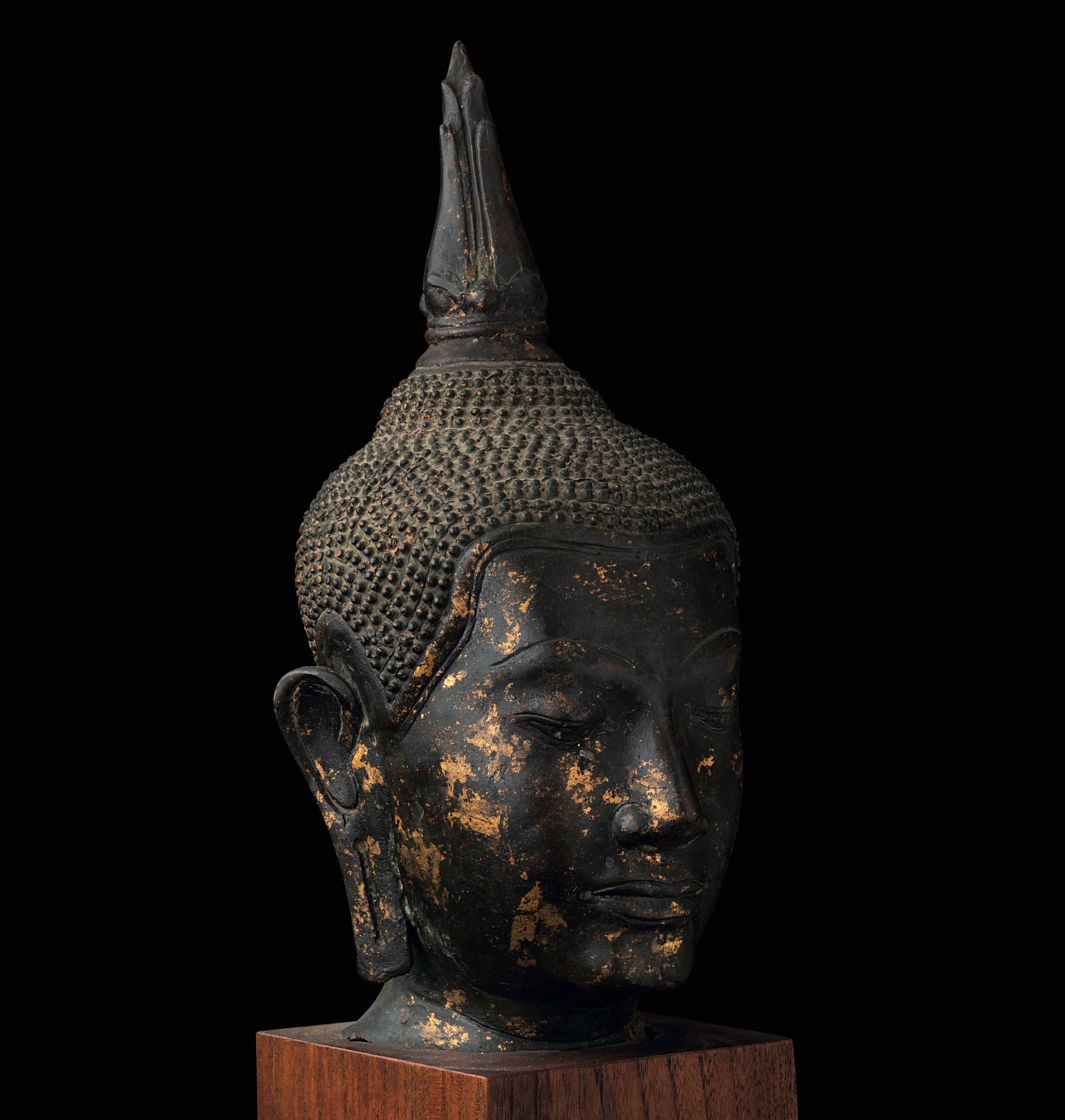 Testa di Buddha in bronzo con tracce di doratura, Thailandia, XVIII secolo