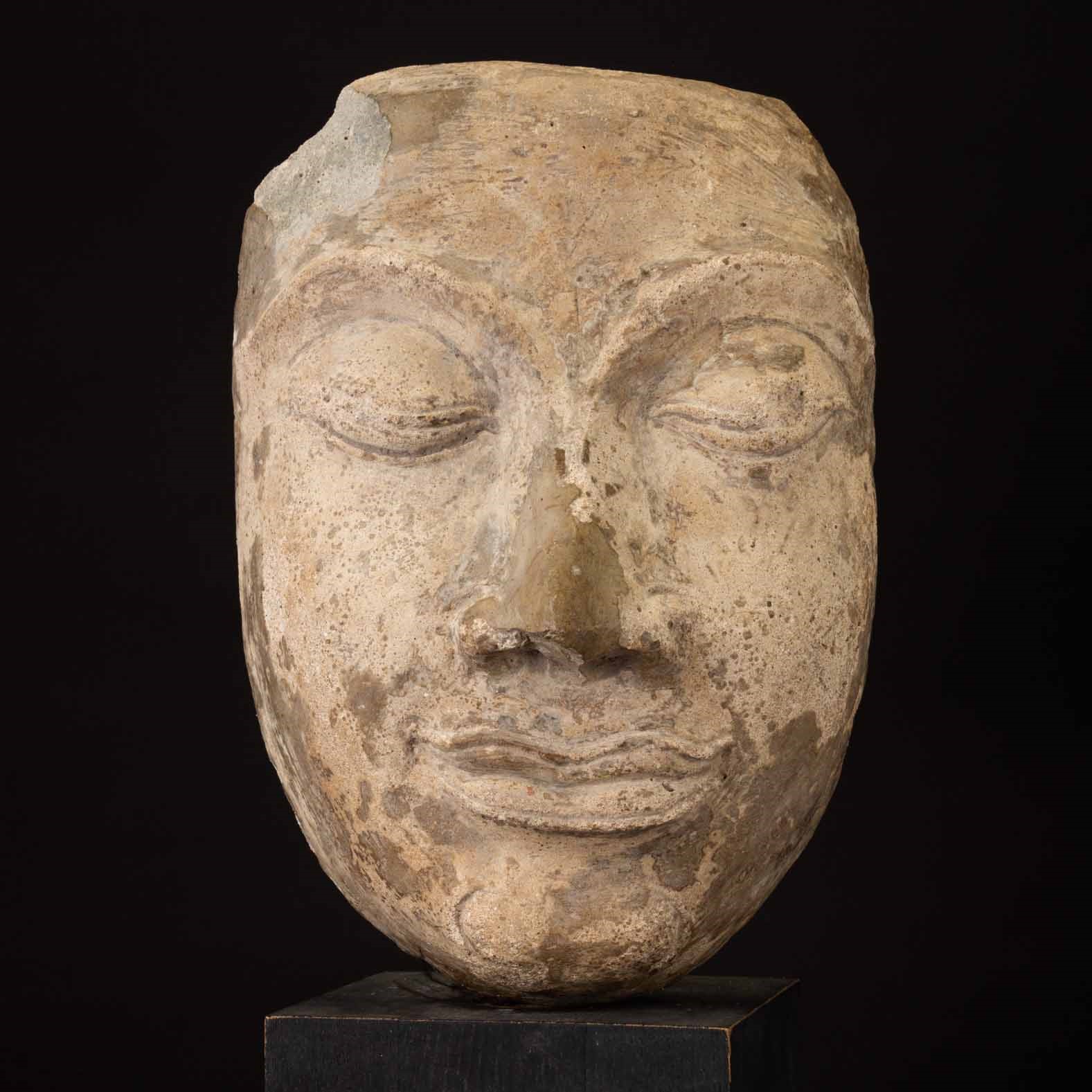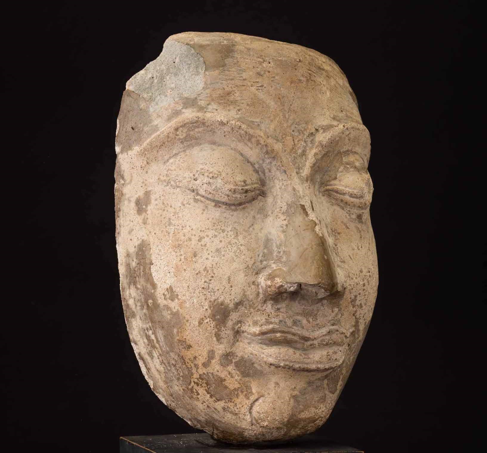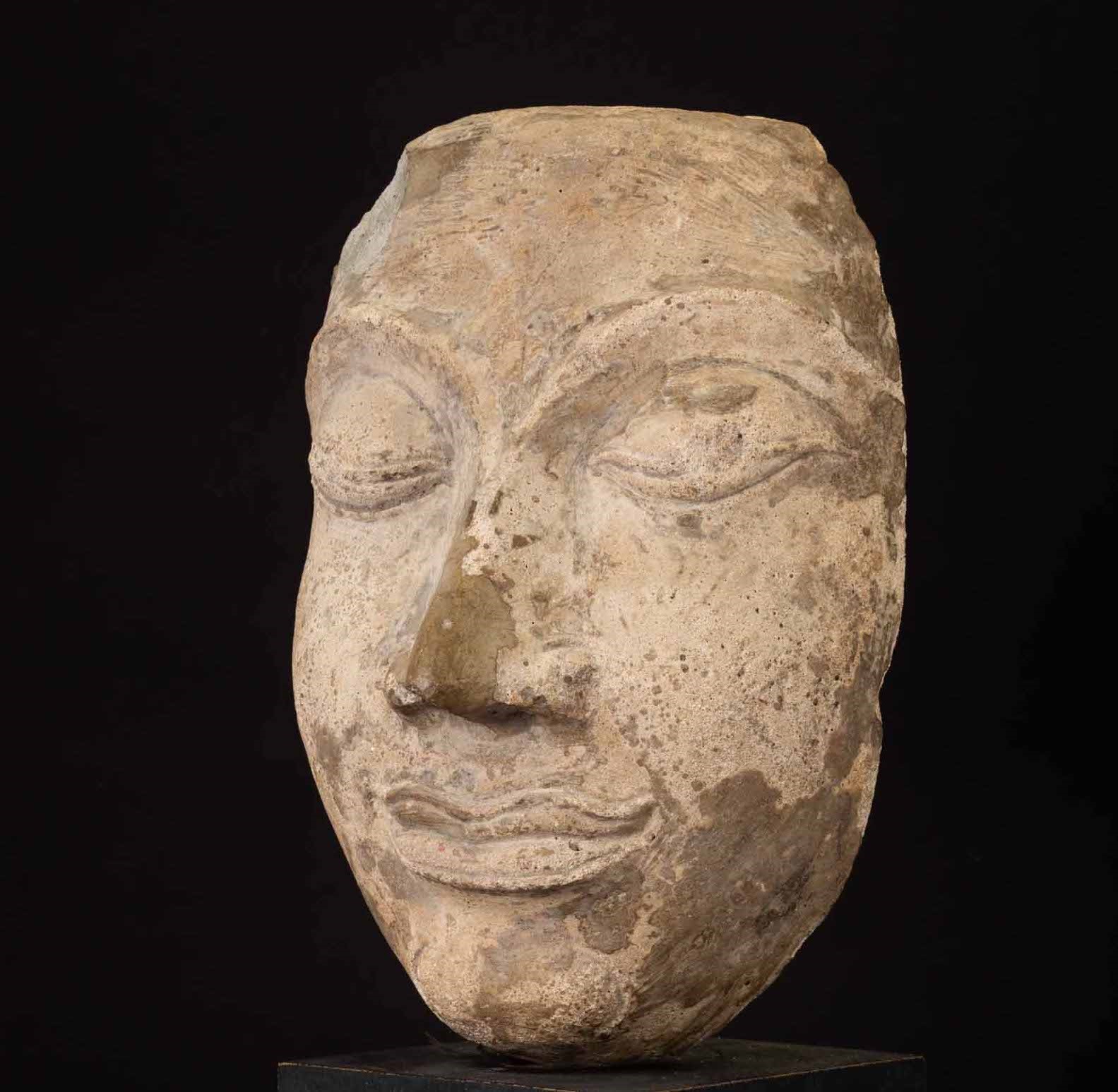 Testa di Buddha scolpita in pietra, Thailandia, Ayutthaya, XVI secolo