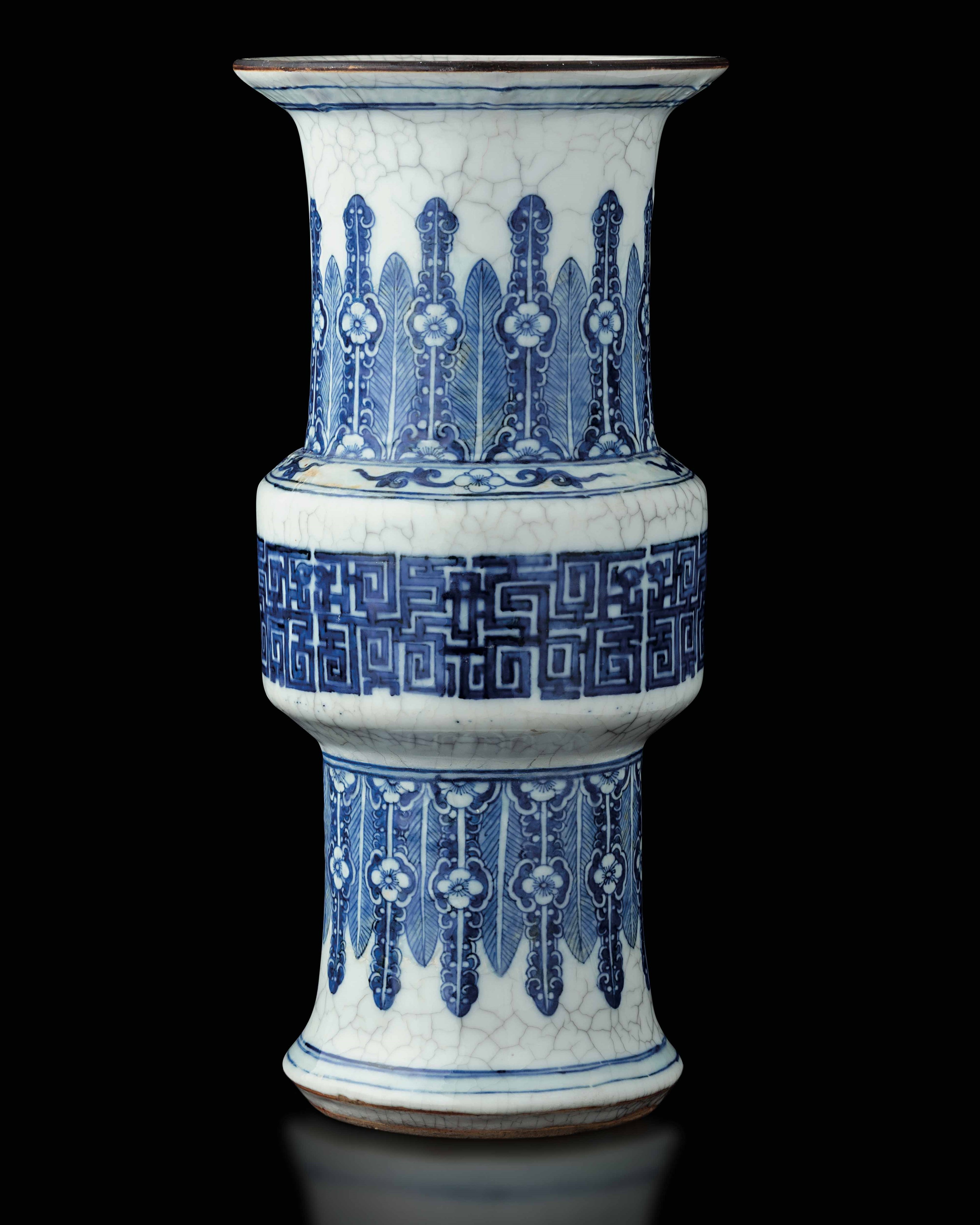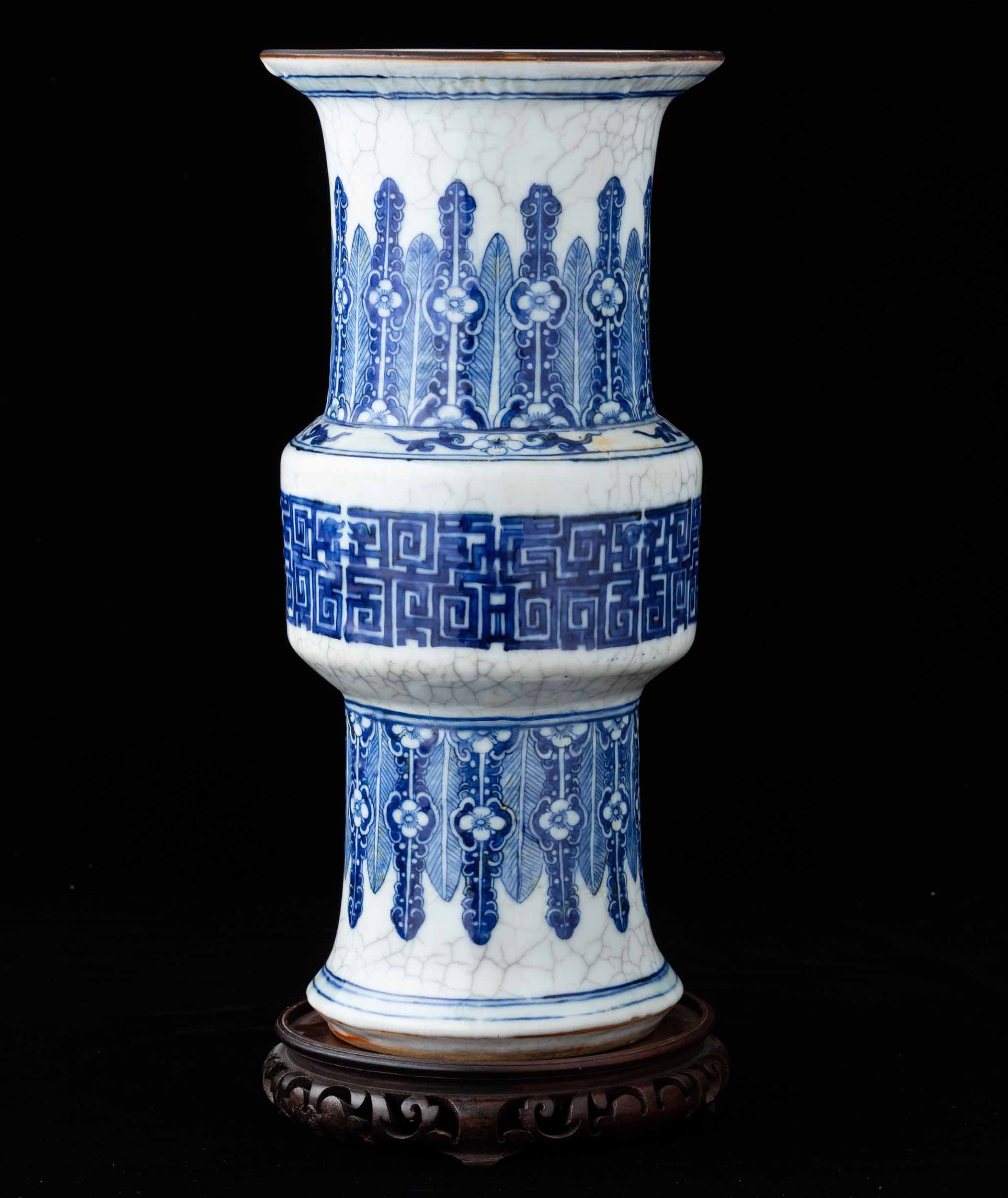 Vaso Gu in porcellana con decoro d'ispirazione arcaica sui toni del bianco e del [..]