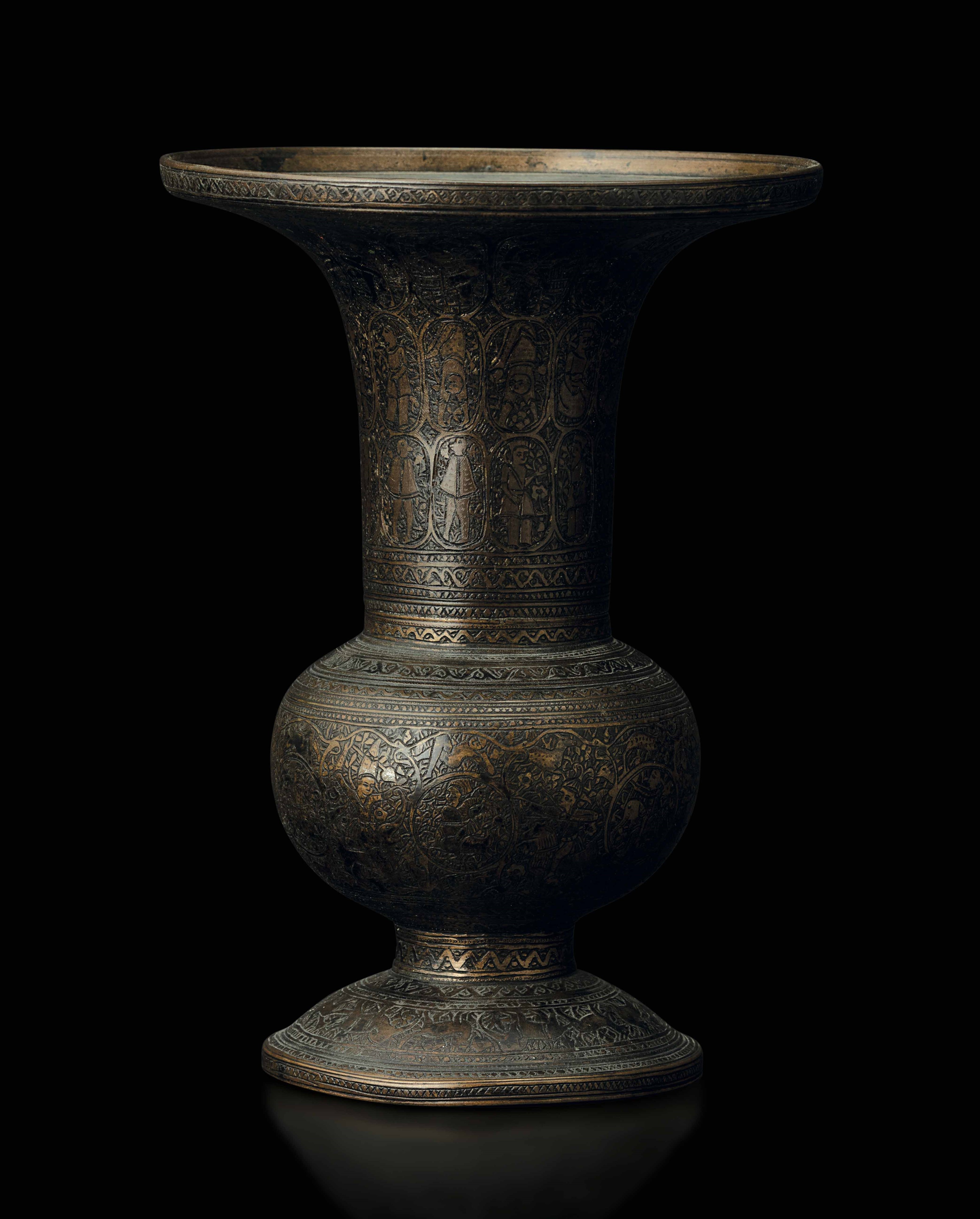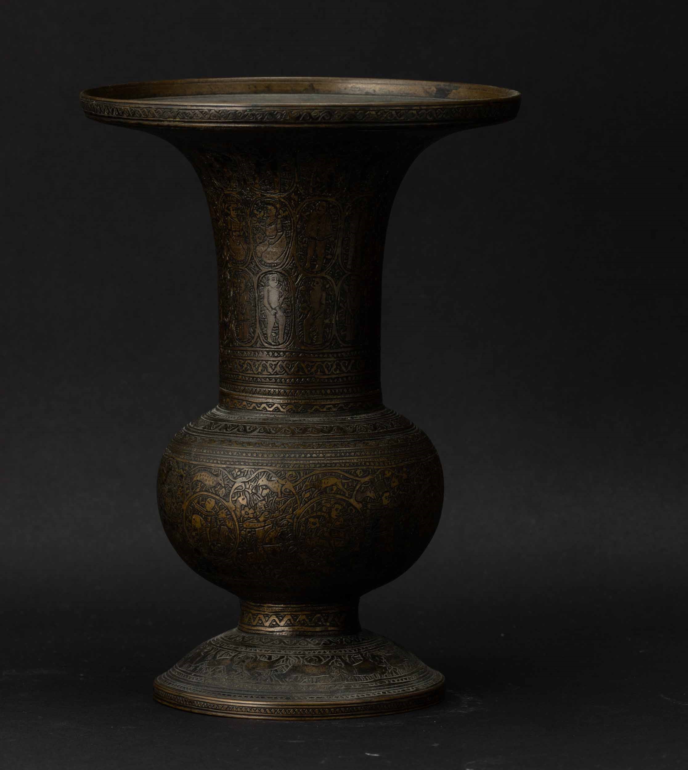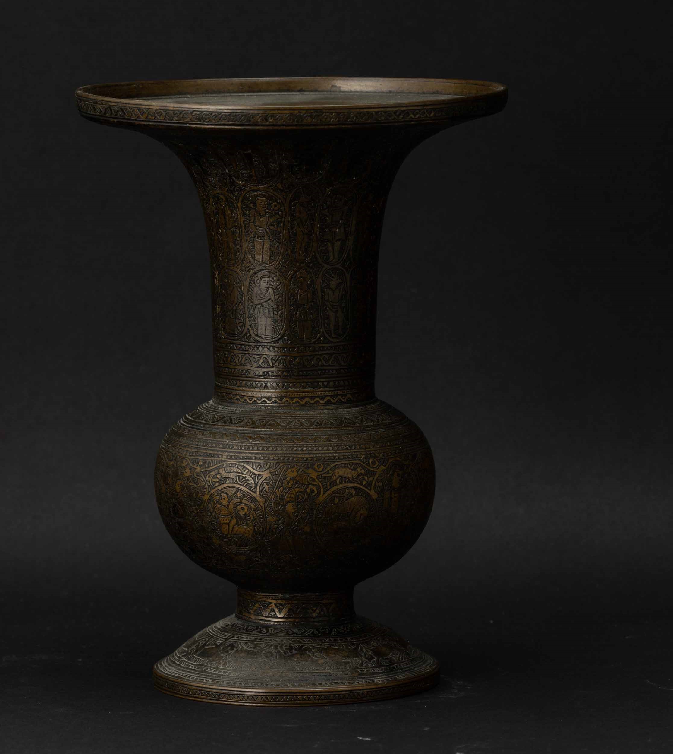 Vaso in bronzo con decori a racemi incisi e figure, Siria, XVIII secolo