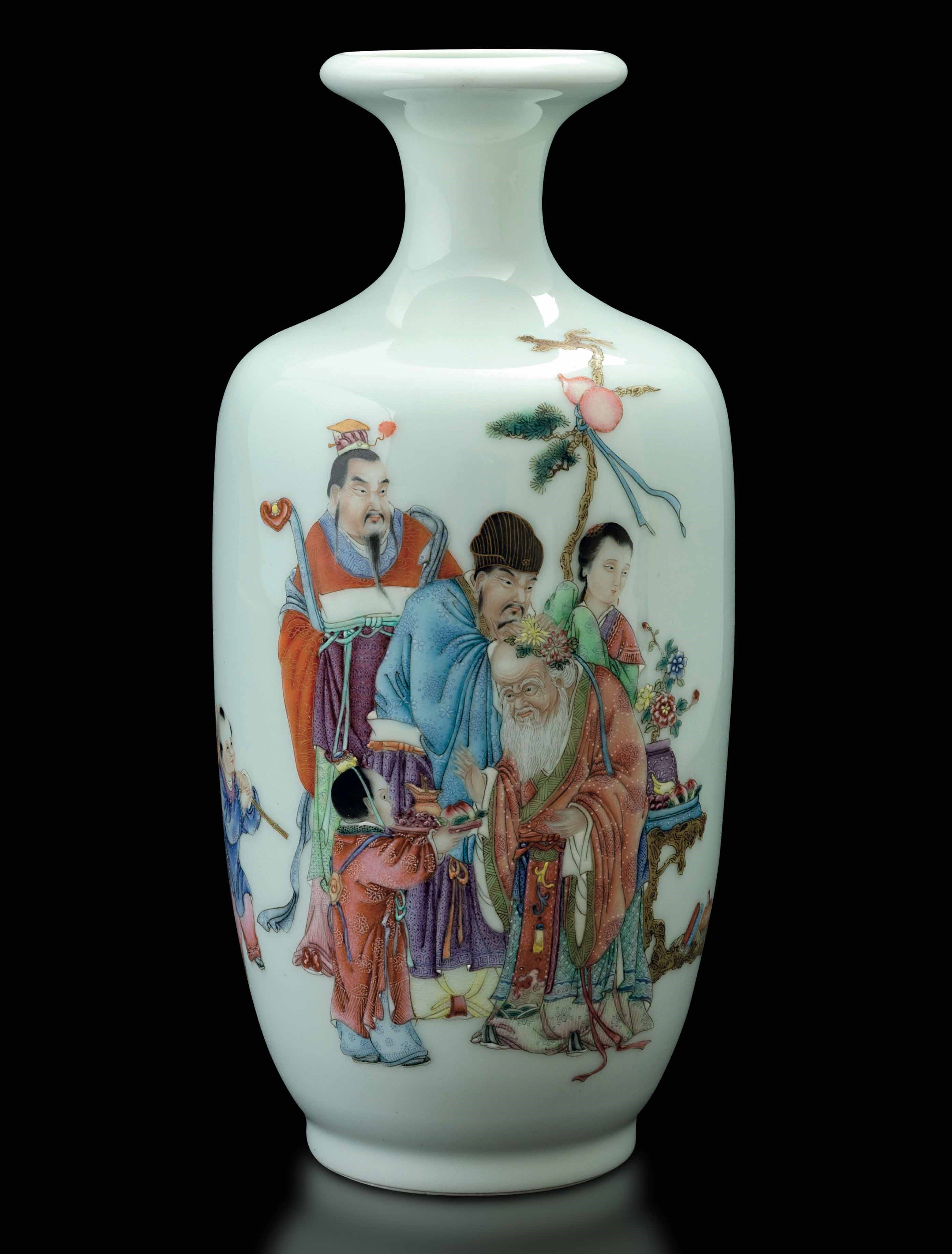 Vaso in porcellana con figure di saggi e iscrizioni, Cina, Repubblica, XX secolo