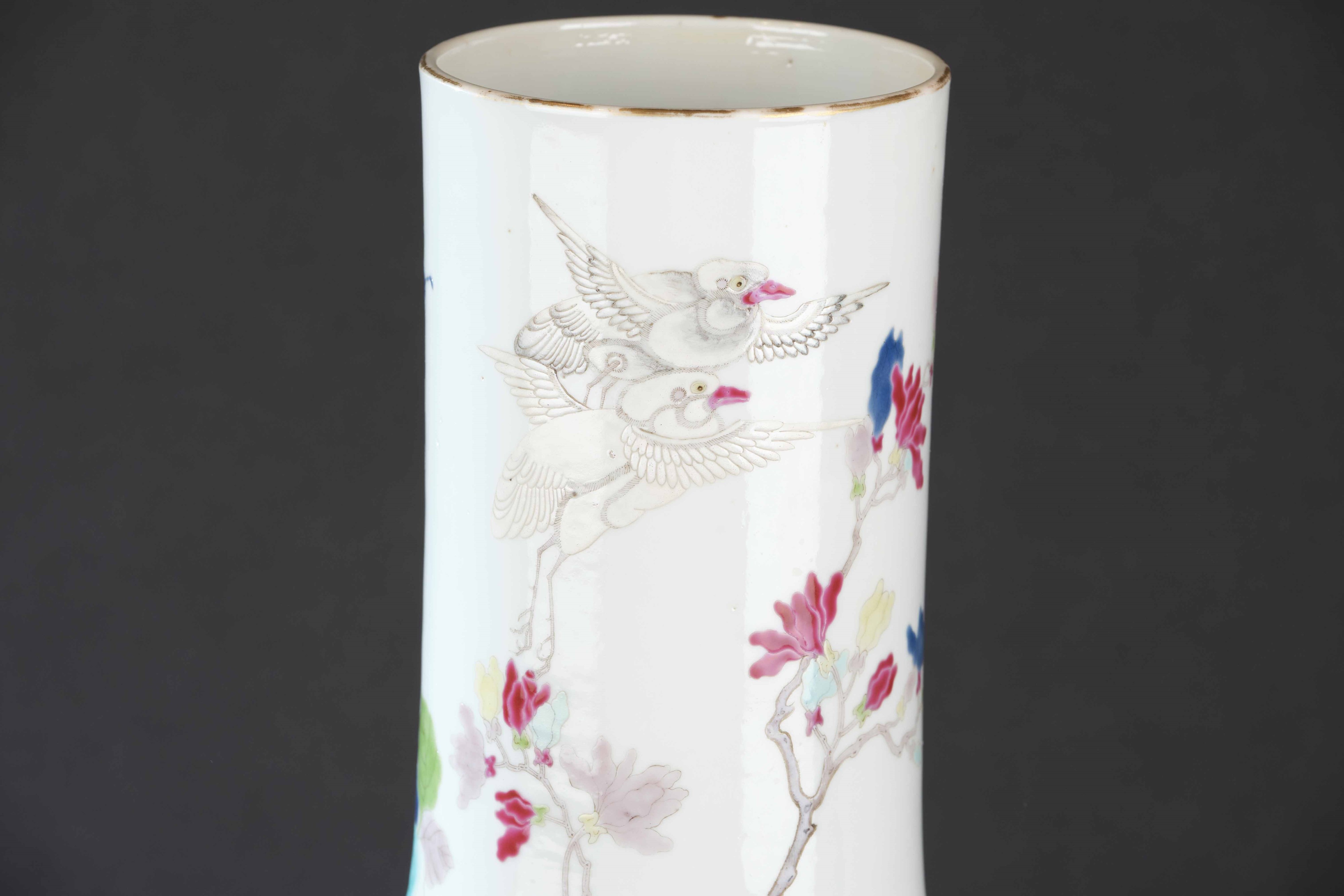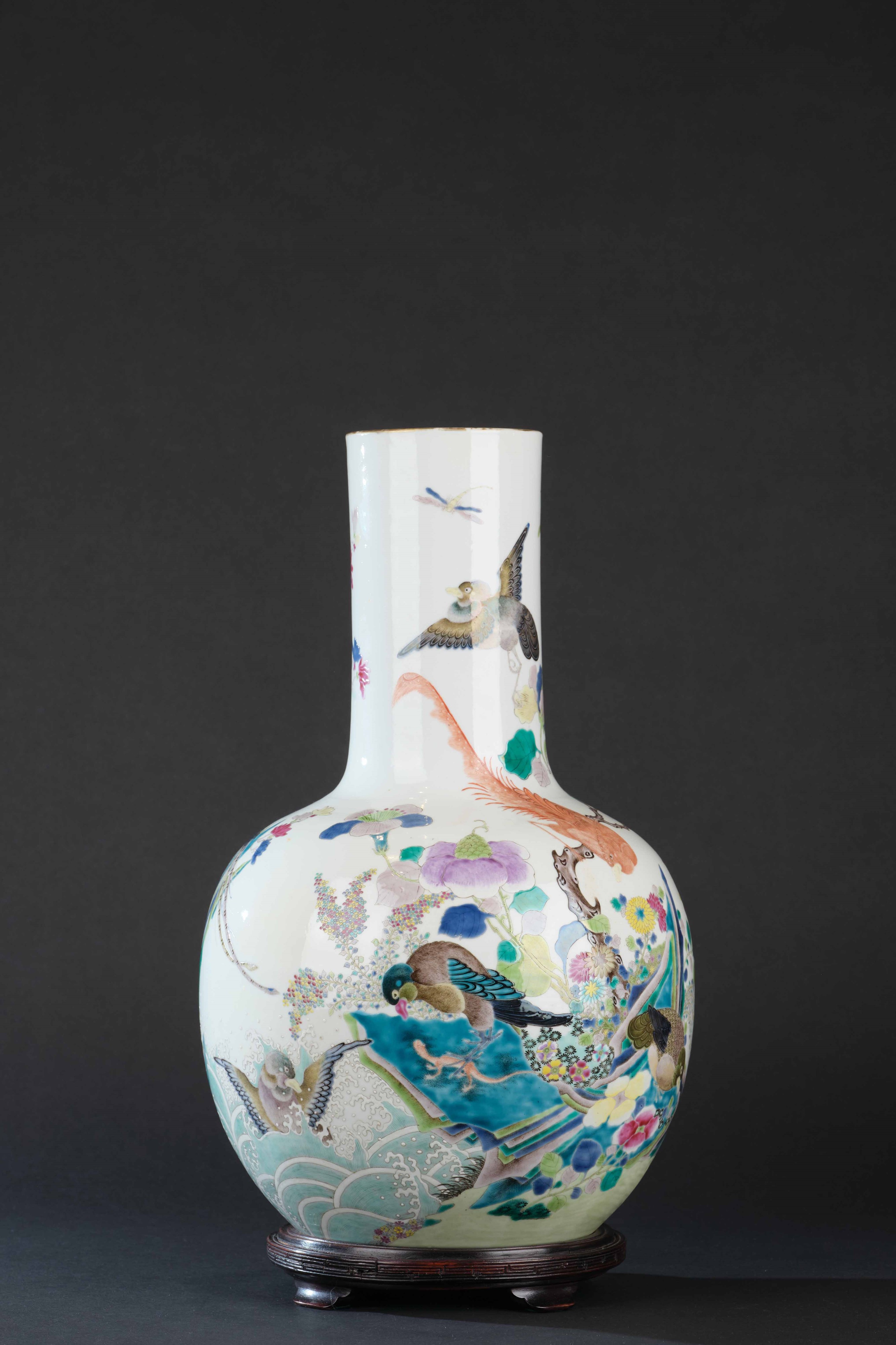 Vaso in porcellana raffigurante paesaggio con volatili e rami fioriti, Cina, Dinastia [..]