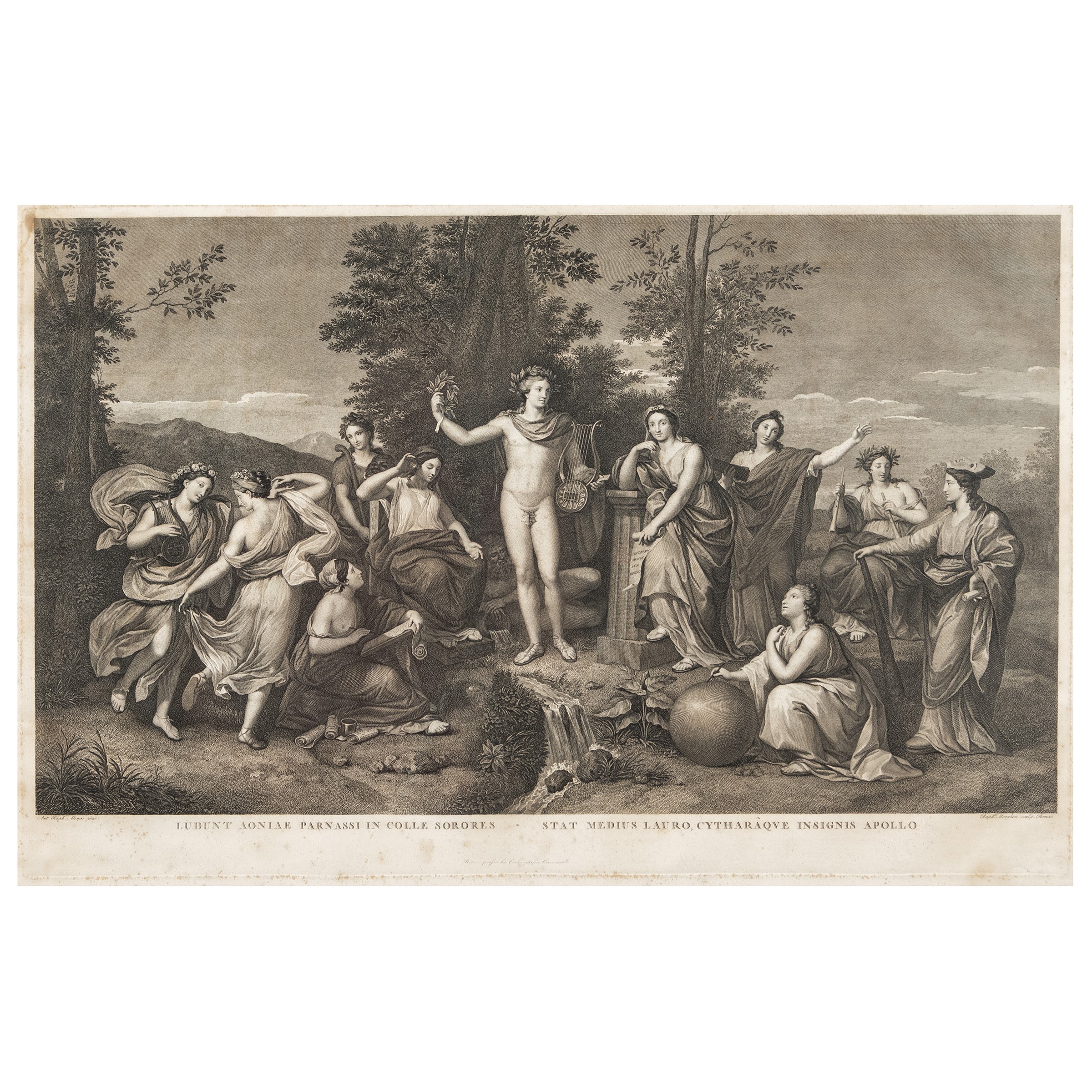 Aussig, Boemia, 1728 - Roma 1779 Il Parnaso, incisione di Raffaello Morghen, entro cornice in legno dorato