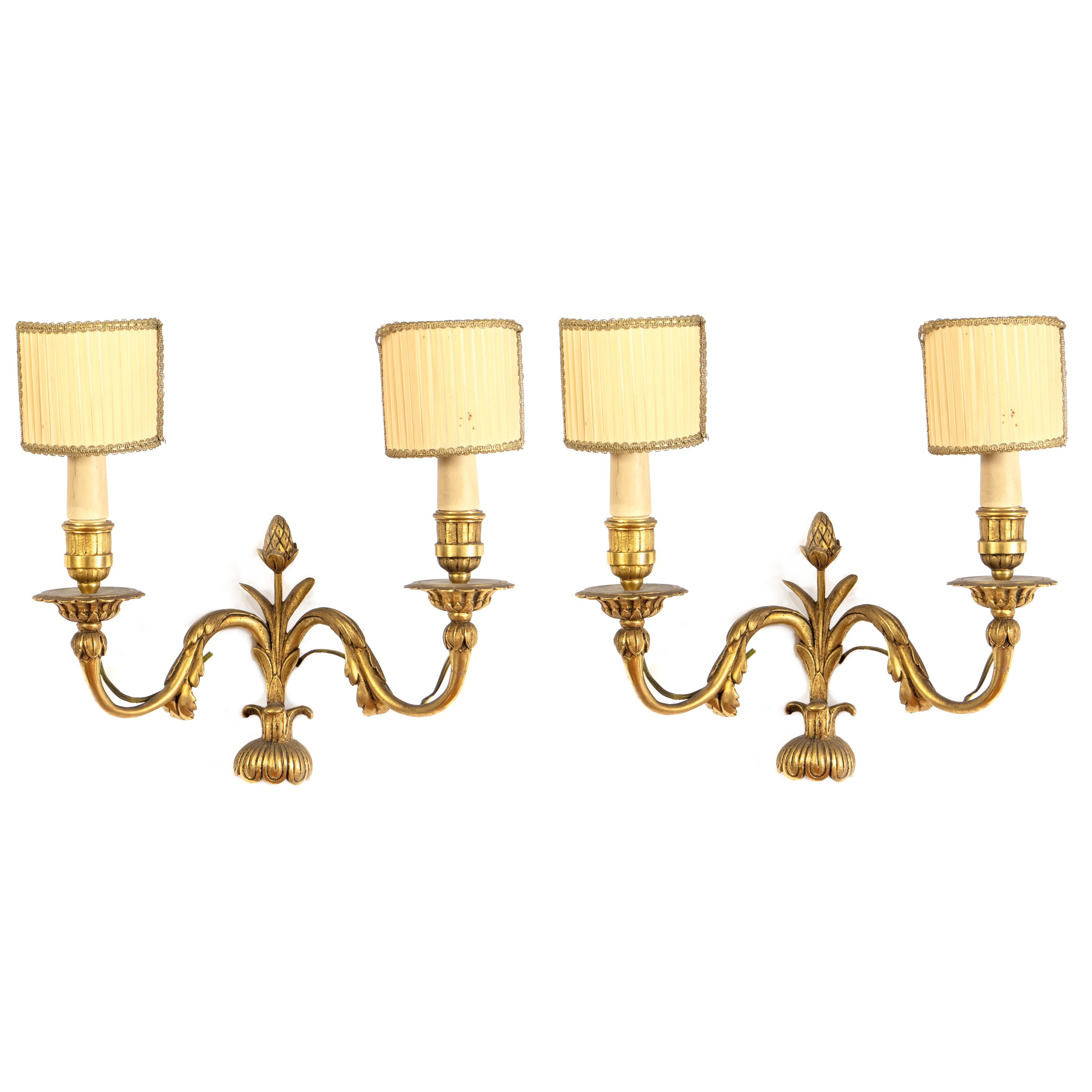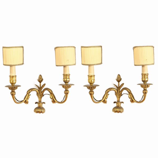 Coppia di appliques a due luci in bronzo dorato