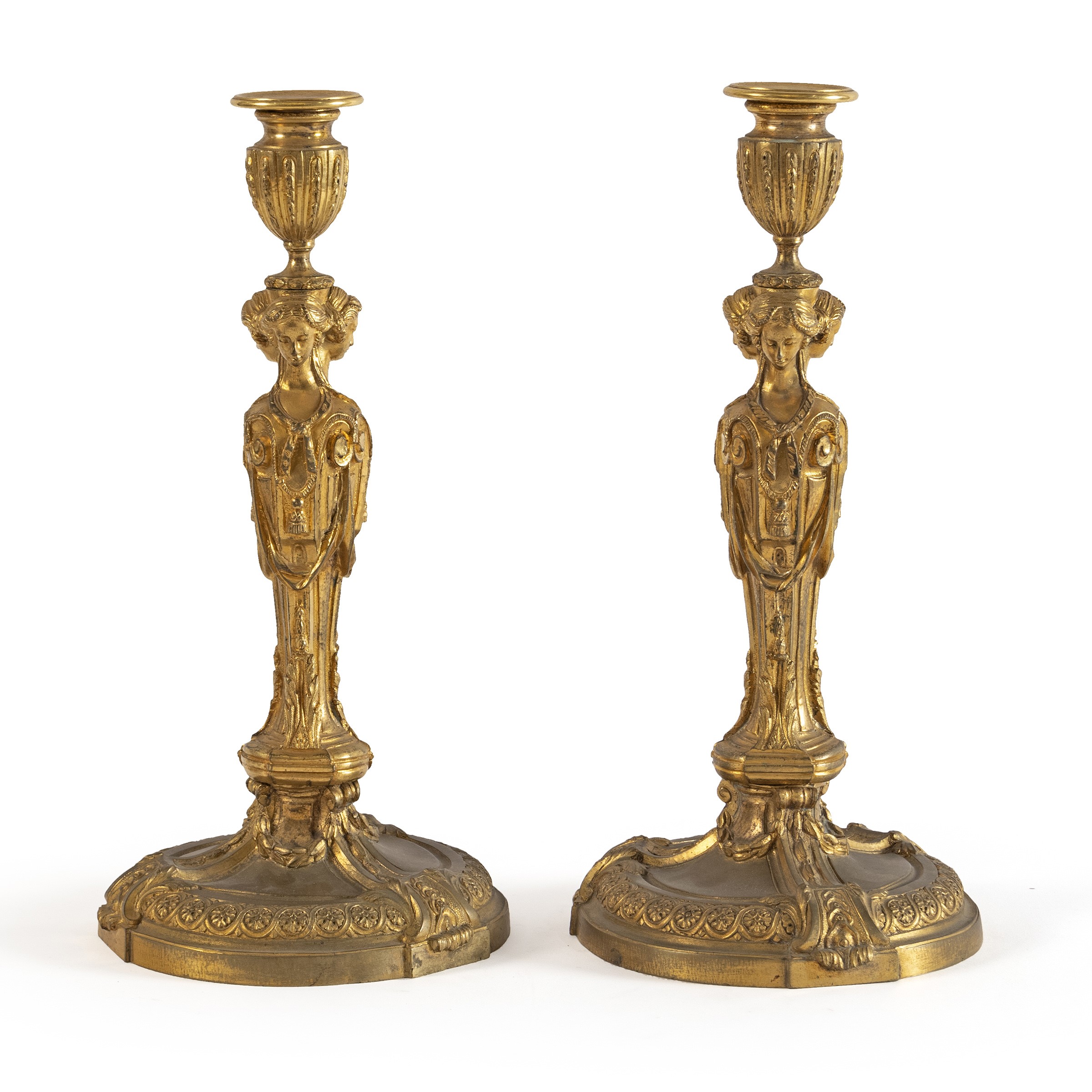 Francia, XIX Sec. fusto decorato con cariatidi su base circolare modanata e decorata con motivi floreali e di festoni
