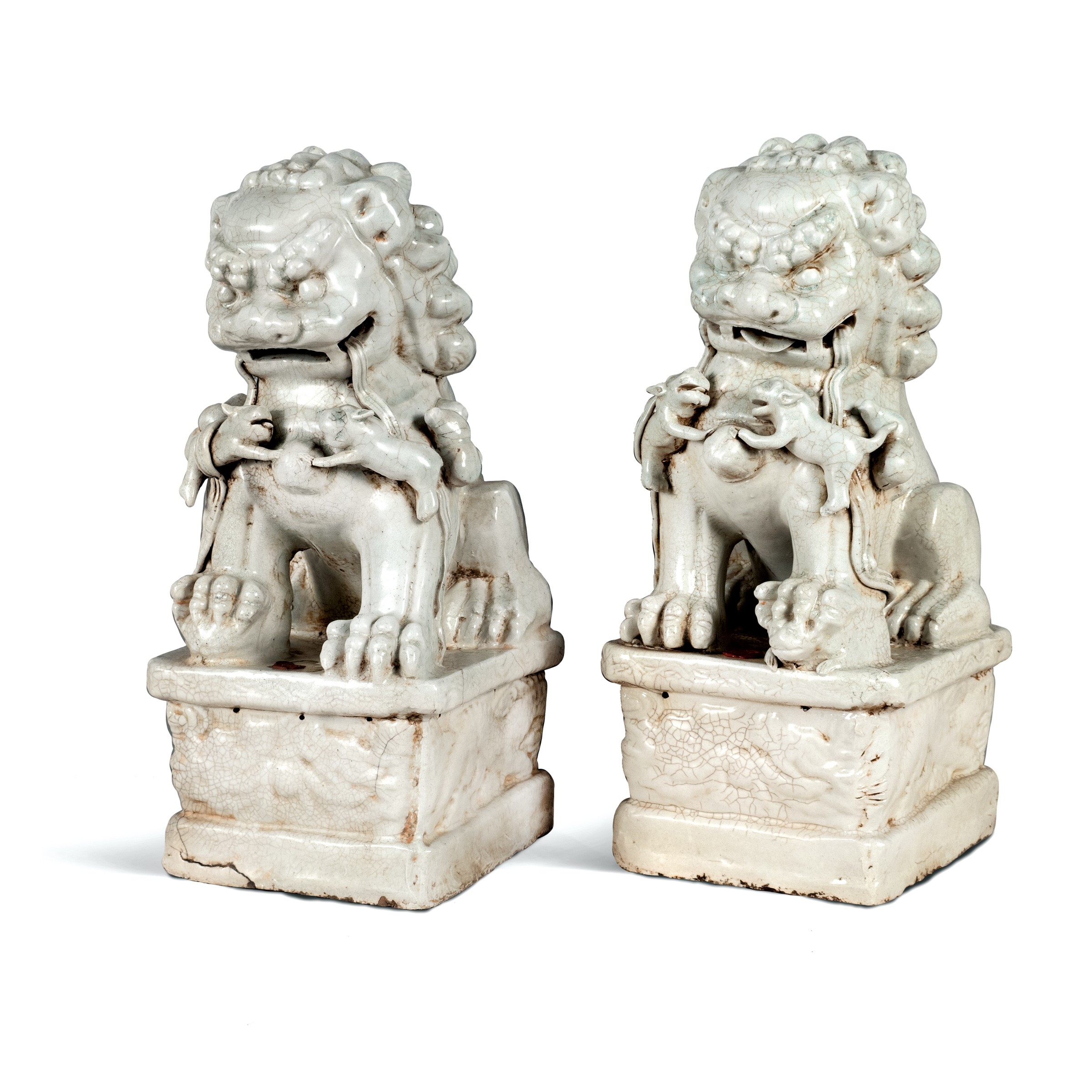 XX Sec. raffiguranti cani di Pho su basi squadrate, difetti e mancanze