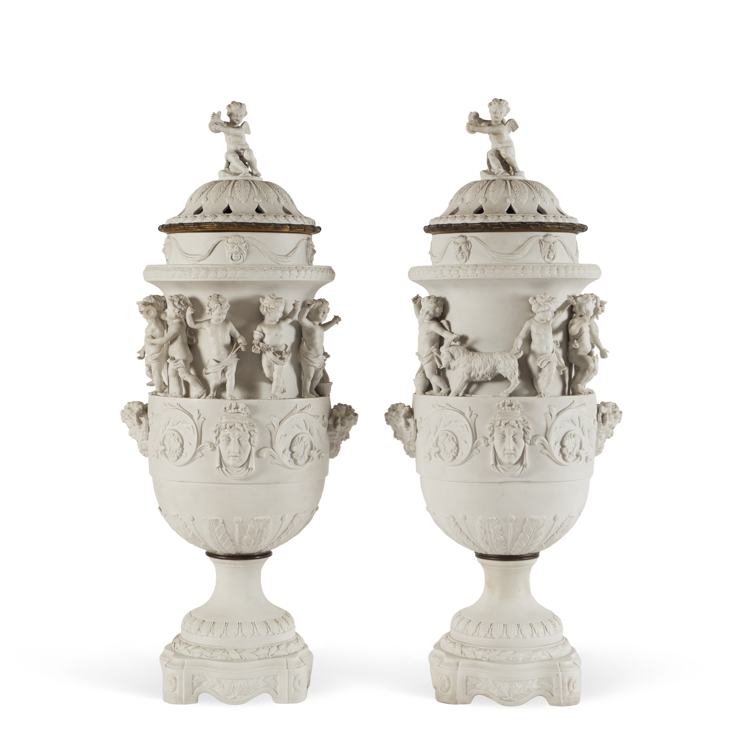 XVIII-XIX Sec. decorate a raffigurare giochi di putti a tutto tondo, mascheroni, festoni e tralci floreali, poggianti su basi sagomate, prese dei coperchi a foggia di putti musicanti, restauri e mancanze