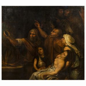 148x165 cm. XVII Sec. La morte di Rachele', olio su tela, entro cornice