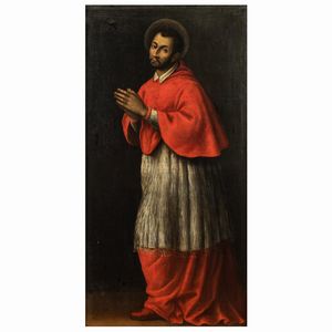 138x71 cm. XVII Sec. San Carlo Borromeo, olio su tela, entro cornice