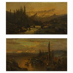 35x65 cm. XIX Sec. Paesaggi, coppia di oli su tela, entro cornice