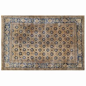 338x220 cm. XX Sec. disegno floreale su fondo beige e blu, difetti e usure