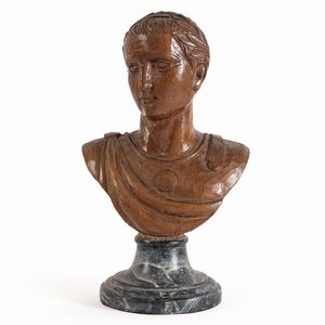 h. 39 cm. Italia, XX Sec. raffigurante Cesare Augusto