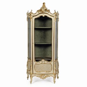 Mobile vetrina in legno laccato, dorato ed intagliato