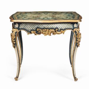 Tavolino da centro in legno laccato, dorato ed intagliato