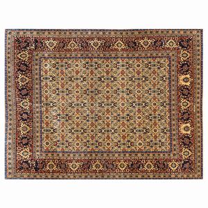 240x200 cm. XX Sec. disegno floreale policromo su fondo beige