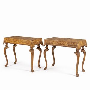 80x95x45 cm. Veneto, XVII Sec. piani rettangolari lavorati a simulare morbidi ricaschi di drappi orlati, gambe [..]