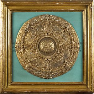 d. 49 cm. Francia, XIX-XX Sec. sbalzato e cesellato con motivi neoclassici e volute vegetali, entro cornice