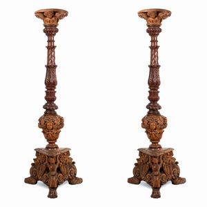 h. 320 cm. Toscana, XVII-XVIII Sec. intagliati con motivi di putti, festoni vegetali e floreali, basi a tripode [..]