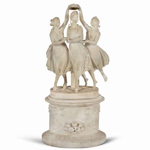40,5x20x19 cm. Italia, XIX-XX Sec. raffigurante Le tre Grazie, poggiante su base a sezione ovale decorata con [..]