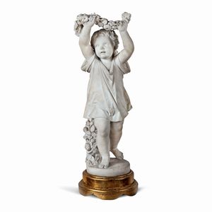 h. 76 cm. Italia, XIX Sec. raffigurante una bambina con ghirlanda floreale, poggiante su base circolare in legno [..]
