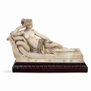 scultura 32x56x17 cm. Italia, XIX-XX Sec. raffigurante Paolina Borghese Bonaparte come Venere vincitrice, poggiante [..]