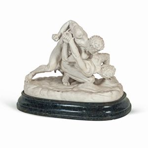 34x48x28 cm. Italia, XIX-XX Sec. raffigurante Lottatori, copia dal noto prototipo oggi agli Uffizi, Firenze, [..]