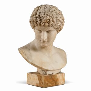 h. 62 cm. Italia, XIX Sec. raffigurante un busto femminile, poggiante su base di forma quadrata, difetti e re [..]