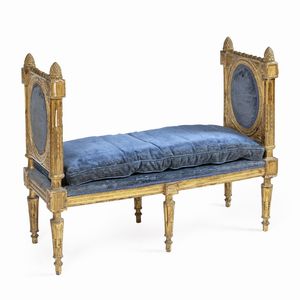 Panchetta Luigi XVI in legno dorato ed intagliato