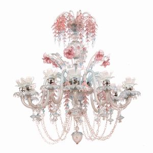 135x130 cm. XIX-XX Sec. in vetro incolore e policromo rosa e azzurro, bracci ricurvi collegati da catenella e [..]