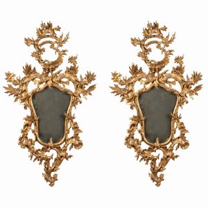 123x66 cm. Lombardia, XVIII Sec. cornici intagliate e traforate con motivi vegetali, specchi argentati al mercurio, [..]