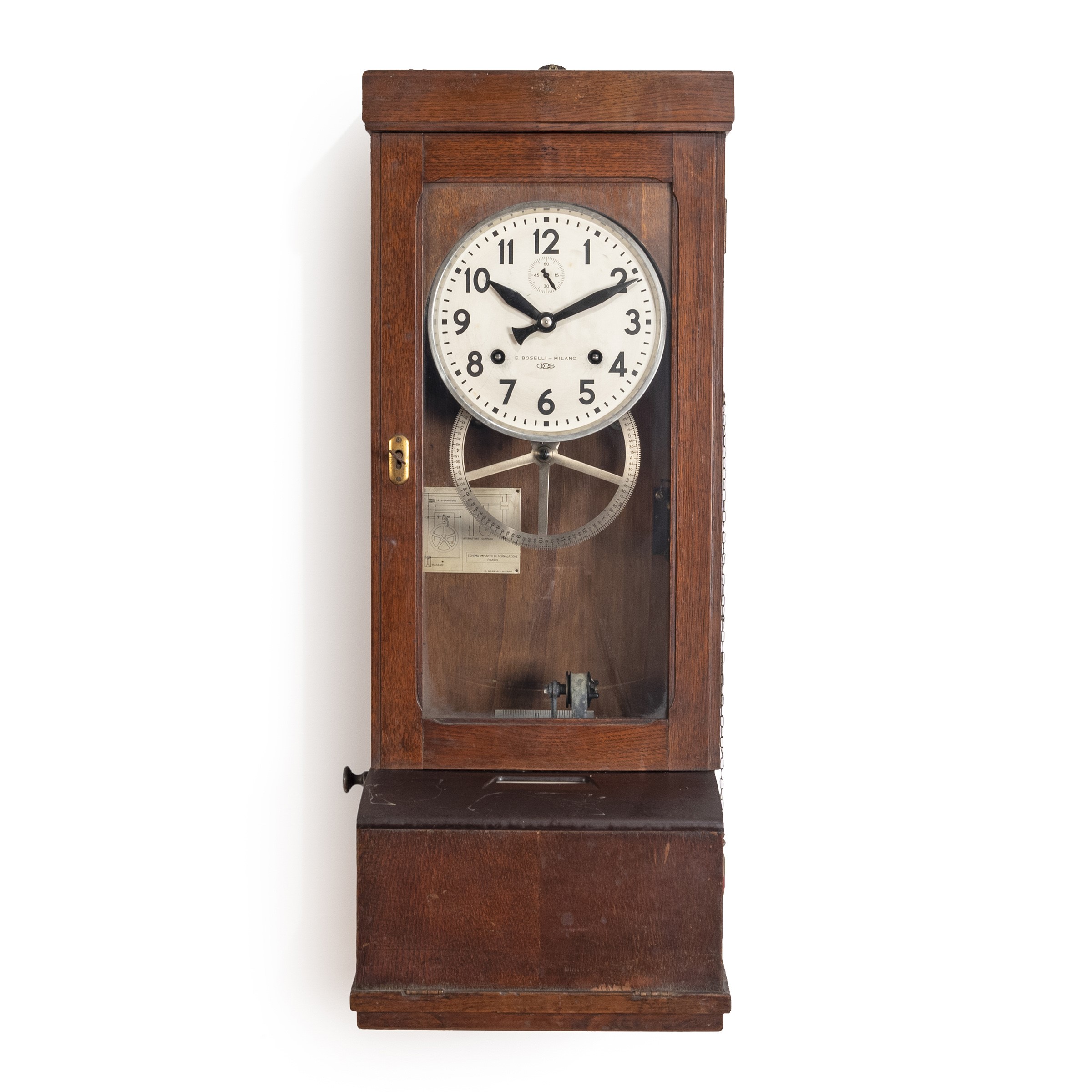 Italia, anni 30 cassa in legno e vetro, quadrante in metallo con numeri arabi, difetti