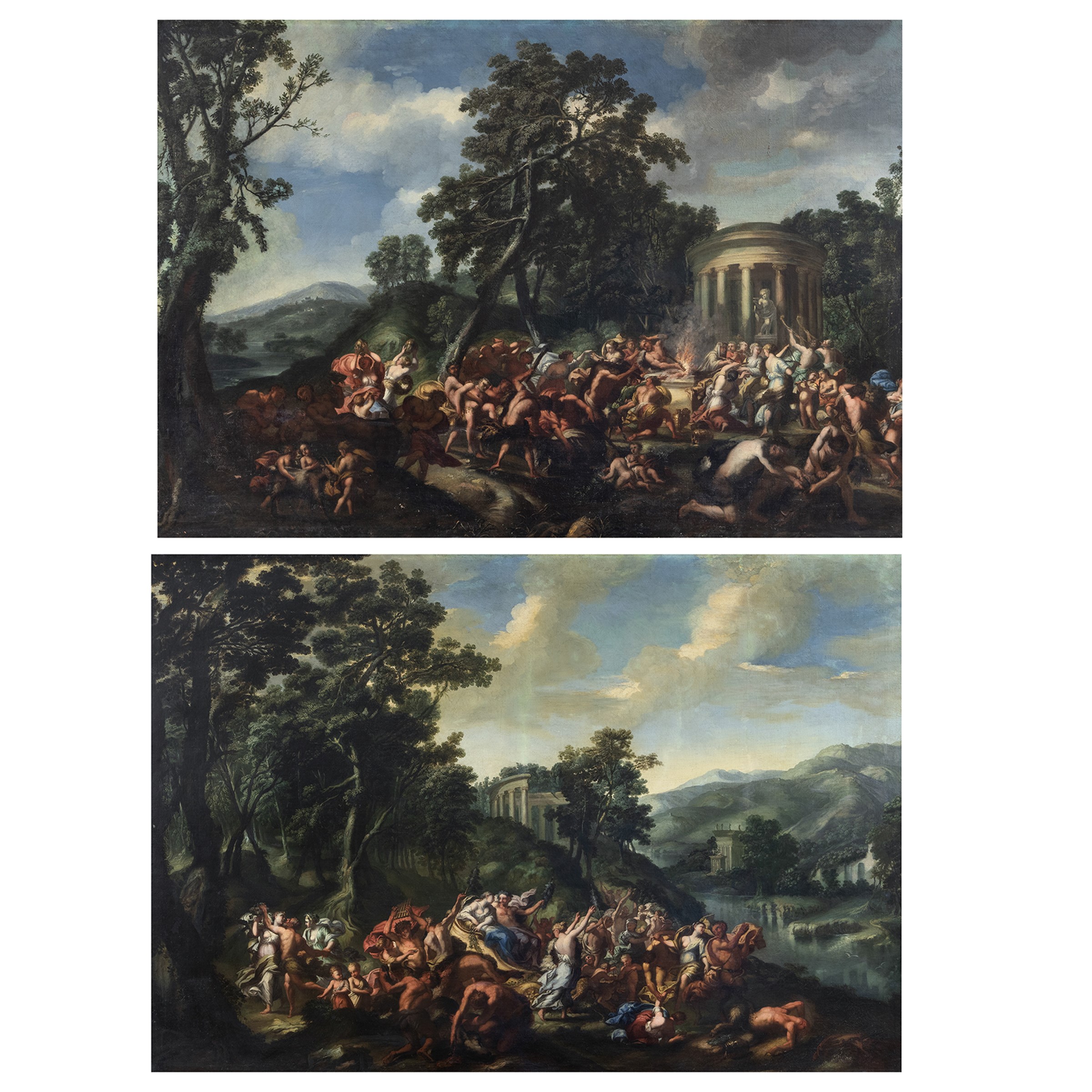 Pitigliano 1702 - Firenze 1788 Il trionfo di Bacca e Arianna - Baccanale, coppia di oli su tela, entro cornice in legno dorato