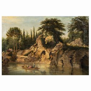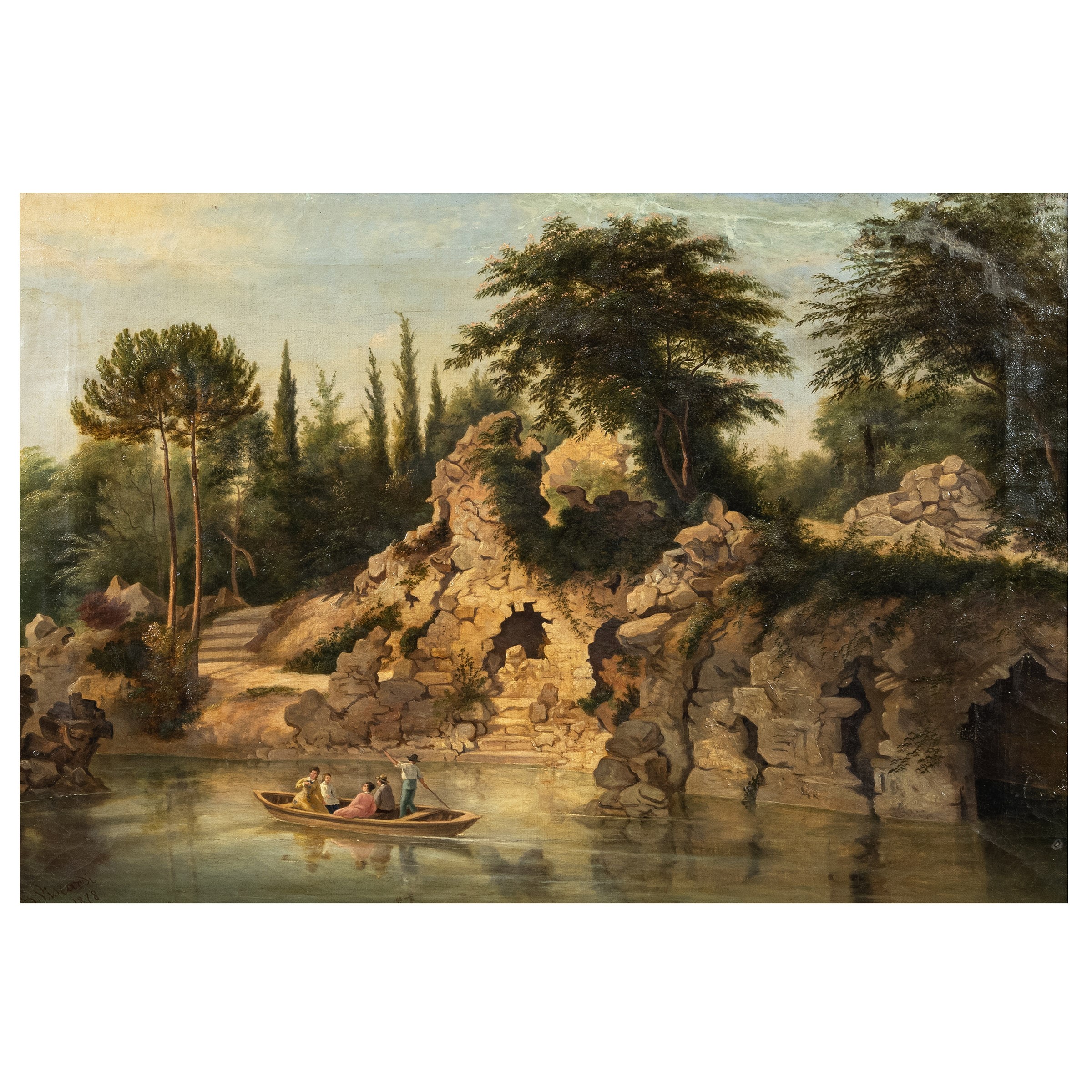 attivo nel XIX Sec. Gita in barca, olio tela, firmato e datato 1878 in basso a sinistra