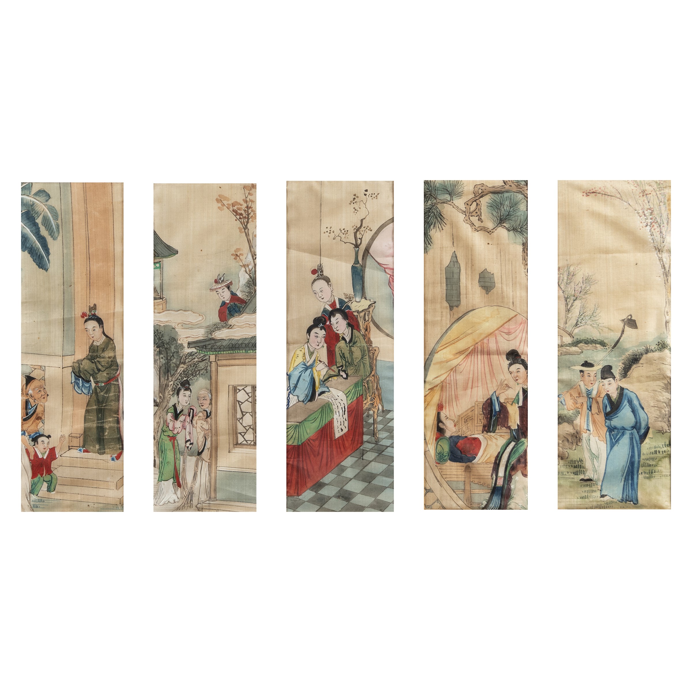 Gruppo di cinque dipinti su seta