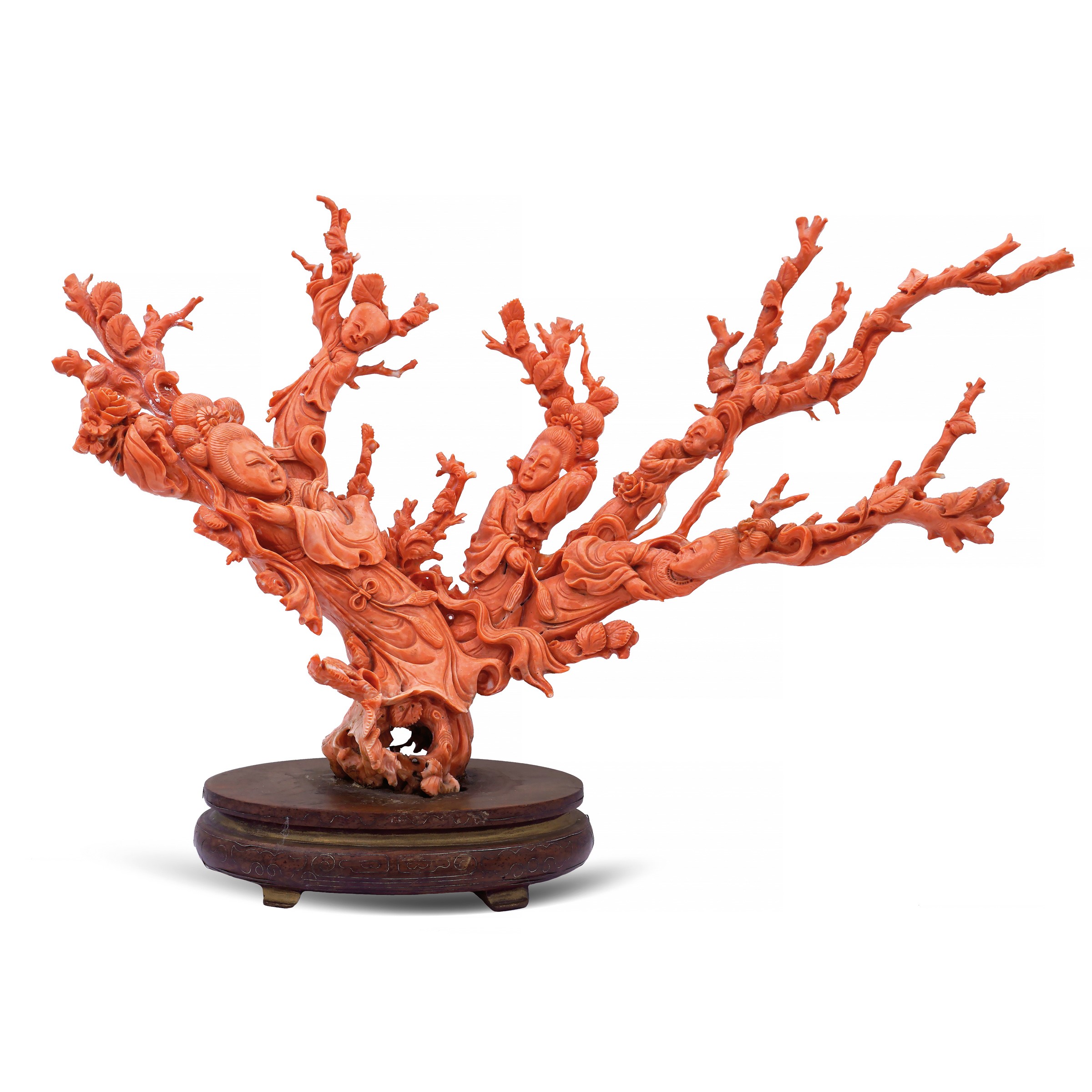 Cina, XIX-XX Sec. scolpito a raffigurare figure femminili con bambini, poggiante su base ovale in legno, peso lordo 1210 gr., lievi difetti