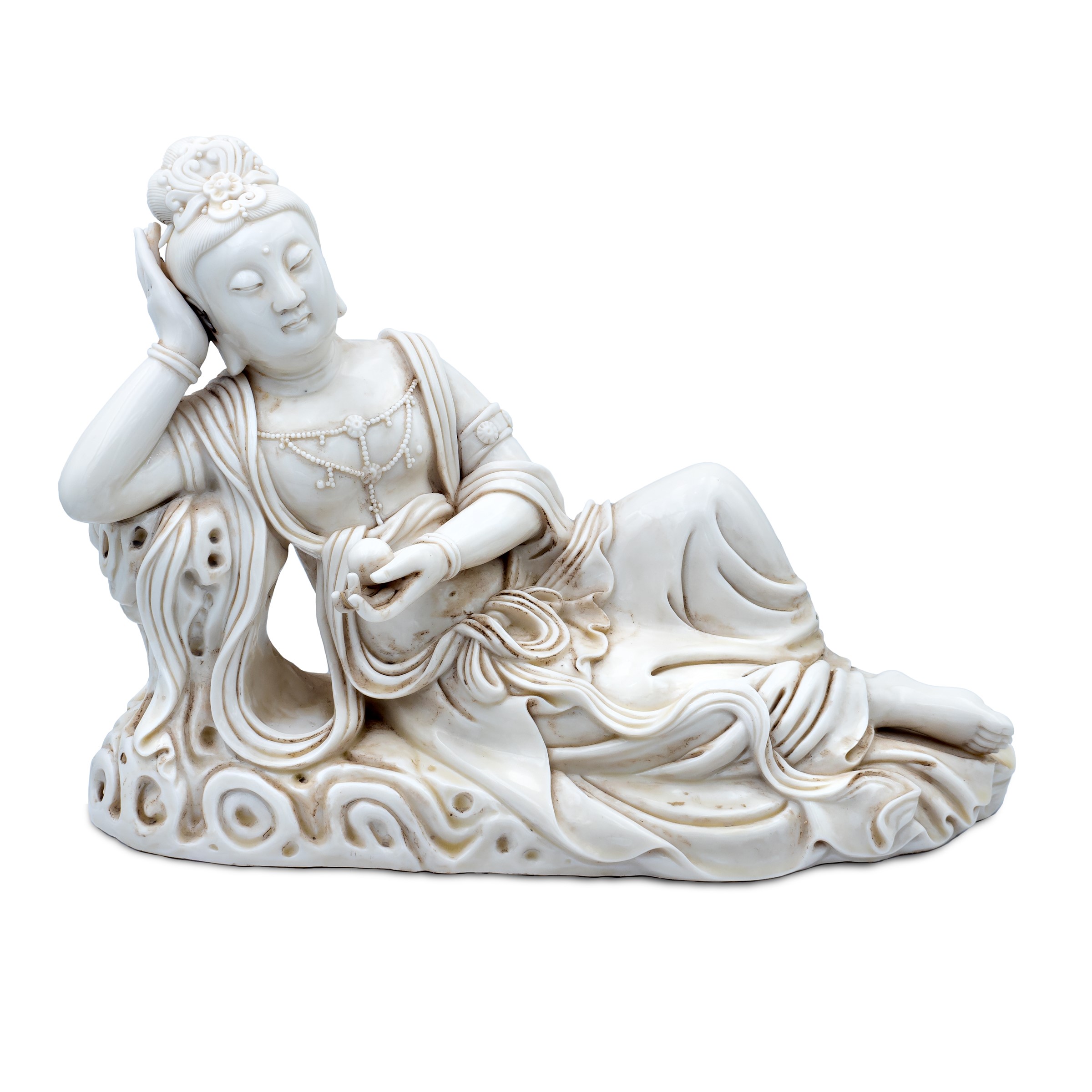 Cina, XIX-XX Sec. raffigurante una Guanyin sdraiata, una mano presenta una rottura