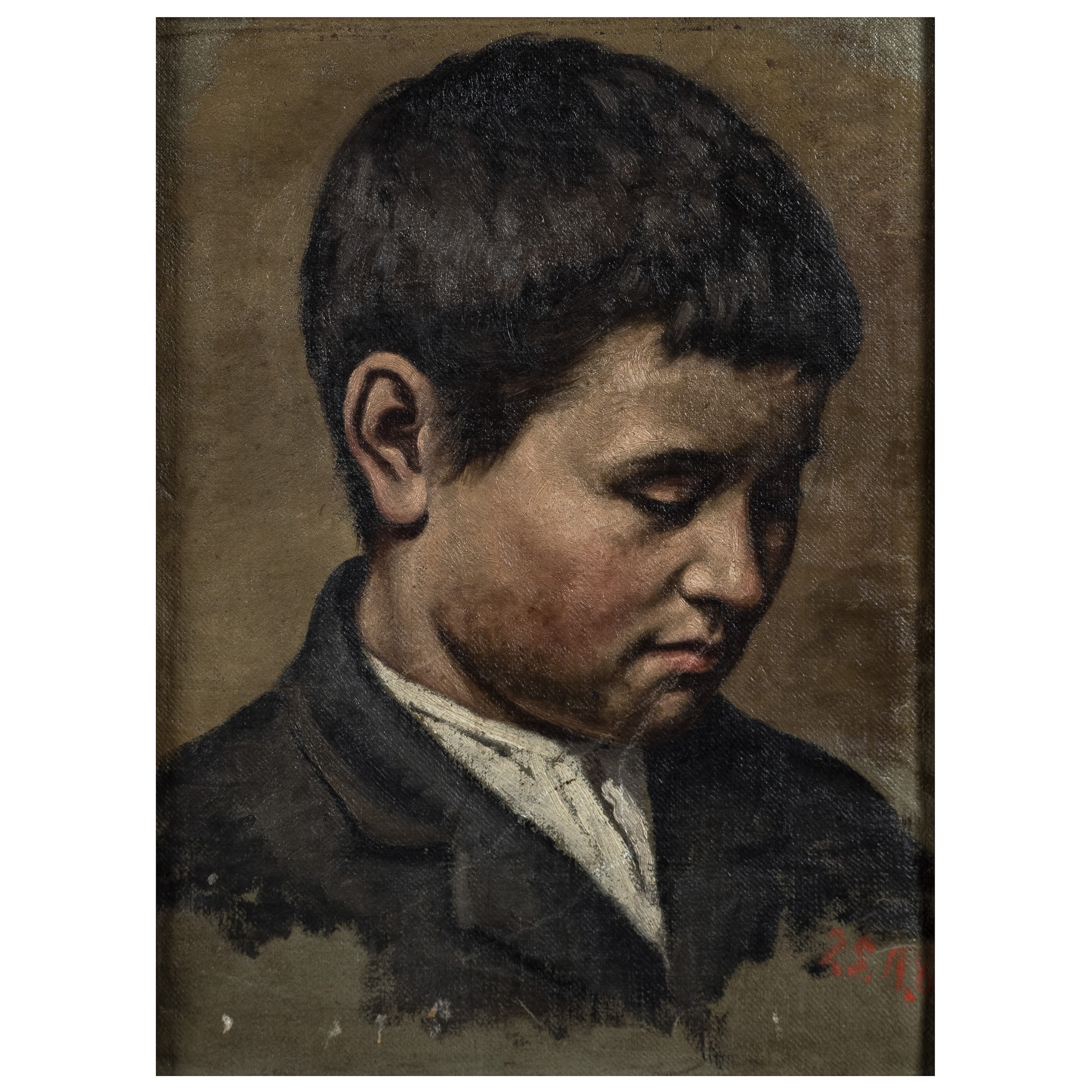 XIX Sec. Ritratto di fanciullo, olio su tela applicata su cartone, datato 1881 in basso a destra, entro cornice