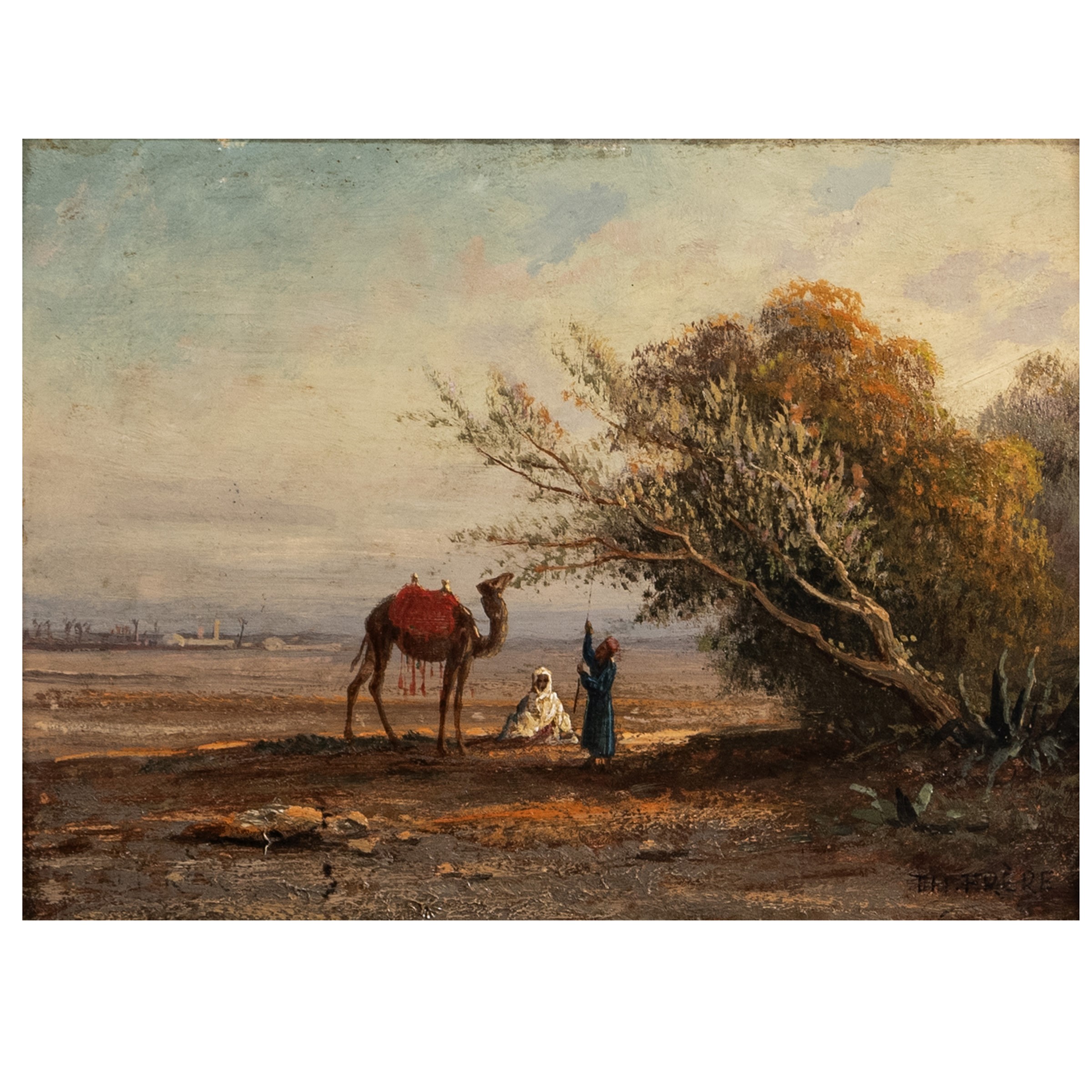 Francia, XIX Sec. Oasi, olio su tavola, reca firma Th. Frère in basso a destra, entro cornice