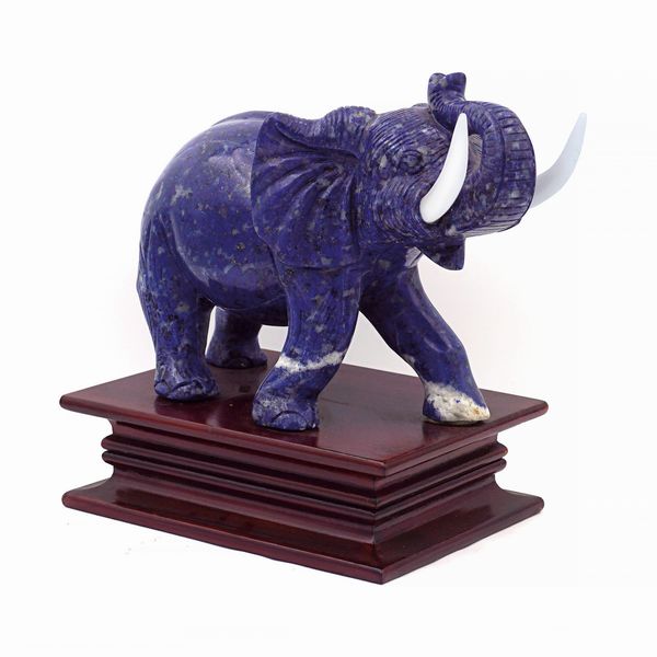 manifattura orientale, XIX-XX Sec. raffigurante un elefante, zanne in marmo bianco, base rettangolare in legno, lievi difetti