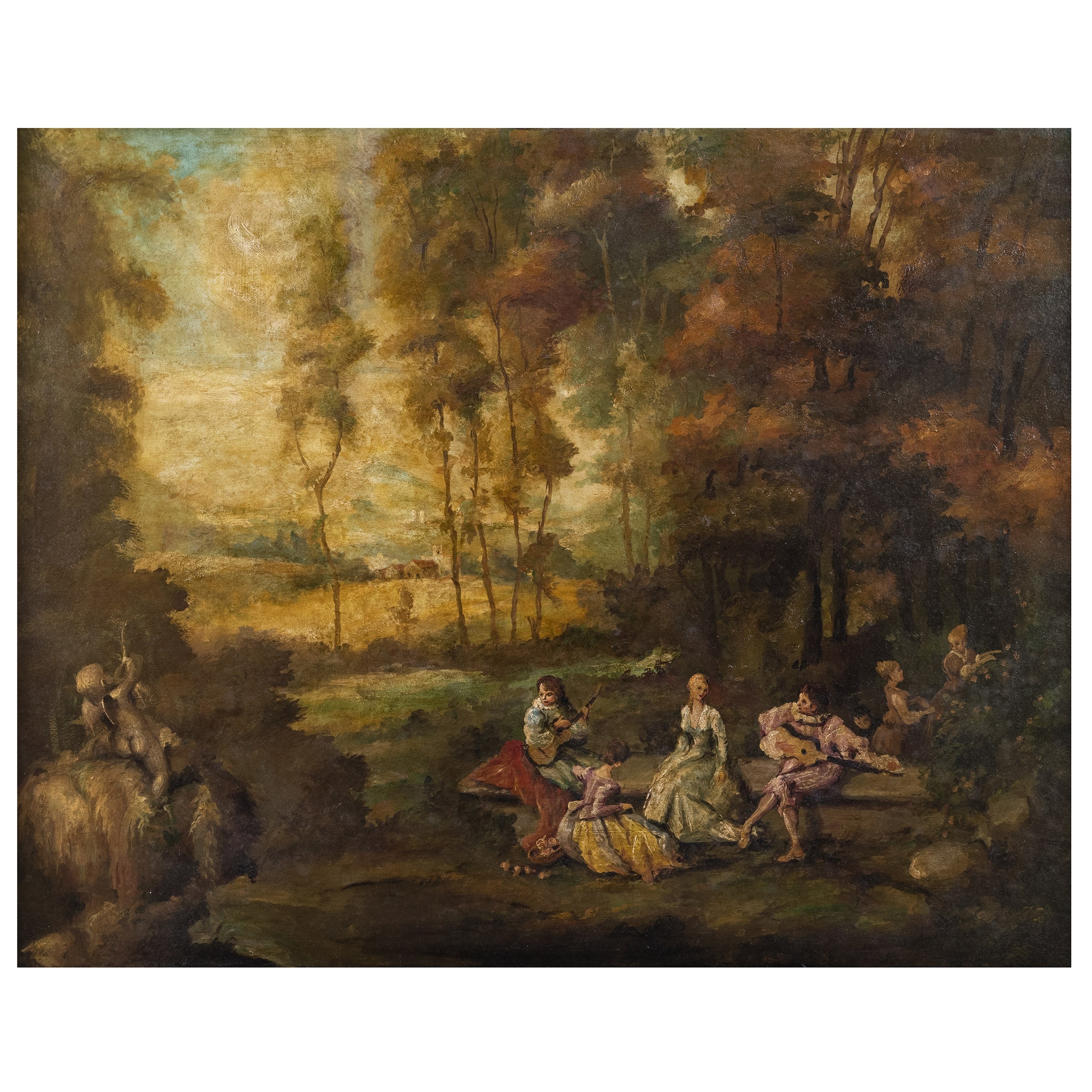 XVIII Sec. Concerto all'aperto, olio su tela, entro cornice
