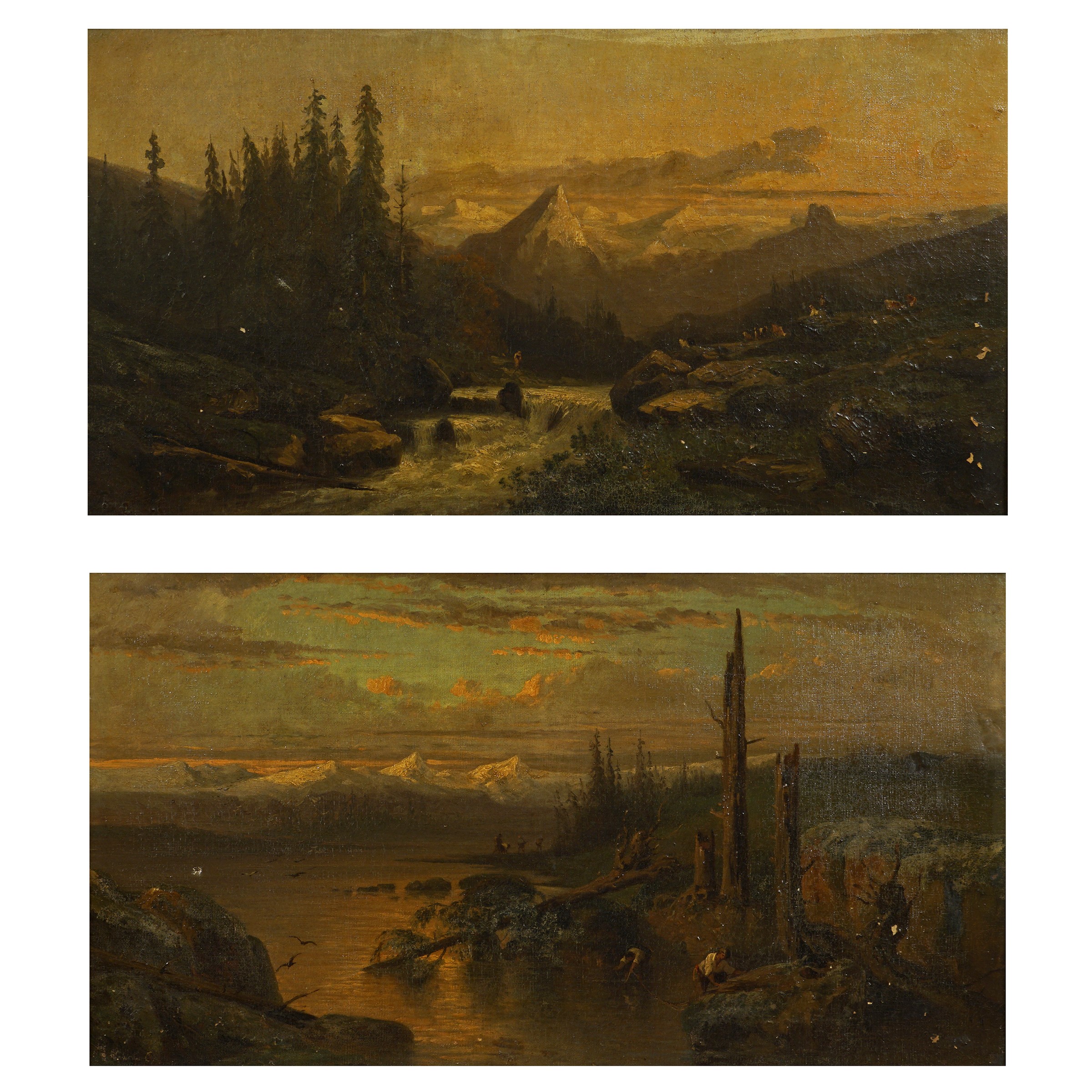 XIX Sec. Paesaggi, coppia di oli su tela, entro cornice