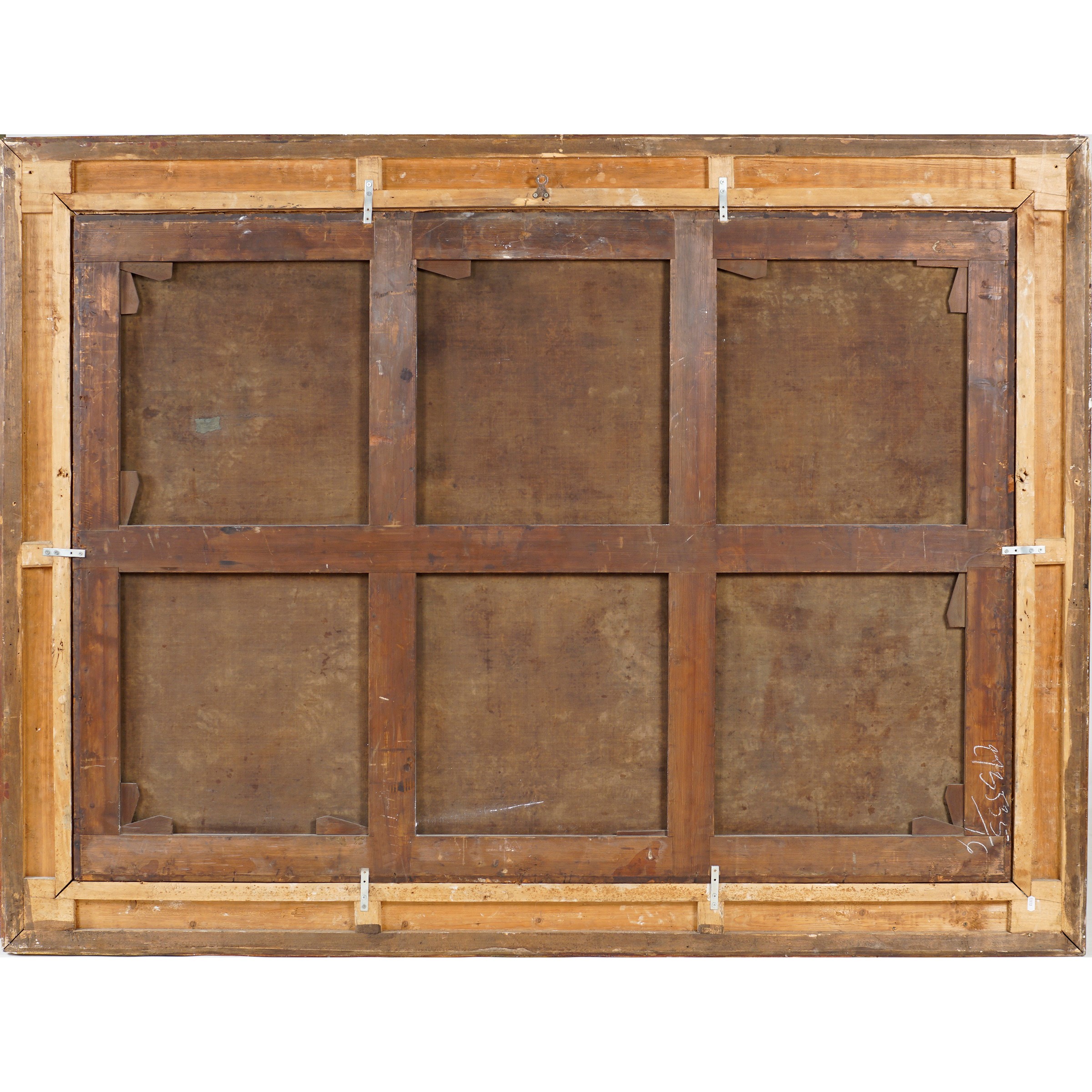 115x162 cm. XVII-XVIII Sec. Sacra Famiglia con San Giovannino e Santa Elisabetta, olio su tela, entro cornice in legno dorato e intagliato